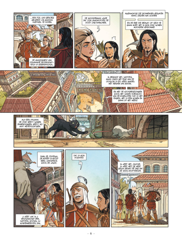Gemiddelde score 5 / 5Dat Dark Dragon Books ook pareltjes van strips kan afleveren, hebben ze intussen ruim bewezen (denk maar aan ‘Jagen op Ramirez’, ‘Terrence Trolley’, het sprookje ‘Bluebells Wood’, etc). Voeg dit tweeluik maar gerust toe aan dit lijstje. Het verhaal wordt opgebouwd aan de hand van 2 verhaallijnen die gescheiden van elkaar verlopen. Enerzijds volgen we Estella Ascensal, een jonge reservist, die opgeroepen wordt om een moord op een held van de burgeroorlog te onderzoeken. (De stad Torrade is intussen 3 jaar in vrede na een burgeroorlog die hun land heeft verwoest.) Al gauw komt ze tot de vaststelling dat de moordenaar niet alleen gehandeld heeft. Estella is als baby geadopteerd geweest door haar vader die bij Onarchen woont; echter liggen haar roots bij Nederwijk onder leiding van de Salamander. Om haar speciale gaves naar boven te brengen, besluit ze de Salamander op te zoeken. Anderzijds wordt Aelis Mendigal, een voormalig soldate uit Torrade, opgeroepen om een verloren klerk te vinden. Deze klerk was bezig met een verslag op te maken over de burgeroorlog, maar is plots verdwenen op rand van de Onarch-gewesten. Aelis sluit aan bij de Romanos, een rondzwervend volk die ook op weg is richting het grensgebied. Op haar tocht ontdekt ze dat de Onarchen blijkbaar toch niet zo’n heldhaftige oorlog gestreden hebben… De verhaallijnen lijken misschien complex op het eerste zicht, maar dat zijn ze niet. Er worden geen onnodige zaken aangehaald en alles blijft to-the-point waardoor je niet het noorden kwijt raakt. In het verhaal komen ook verschillende soorten volkeren voor, wat de nodige diepgang geeft. De verhaallijnen vloeien mooi over in elkaar en weten een mooi, afwisselend geheel af te leveren. Later zal blijken dat de 2 verhaallijnen elkaar aanvullen. Debutant Gwenaël levert hier bijgevolg een knap verhaal af dat weet te bekoren. De tekeningen komen van de hand van Elisa Ferrari (Pirates of the Carribean, Star Wars, Avontuur in Venetië) en zijn ok. In close-up zijn de tekeningen meer dan goed, maar als de ruimere omgeving weergegeven wordt, verliest het geheel detail. Maar dit is nooit storend, alles blijft sfeervol en weet de toon te zetten. Dit is zo’n tweeluik waarvan je het jammer vindt dat het stopt na het tweede verhaal. Het universum in deze albums biedt nog zoveel meer om te ontdekken en over te verhalen..