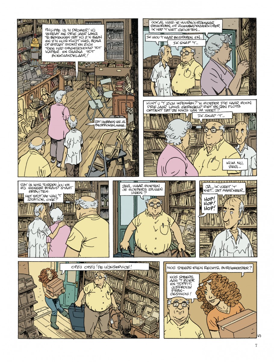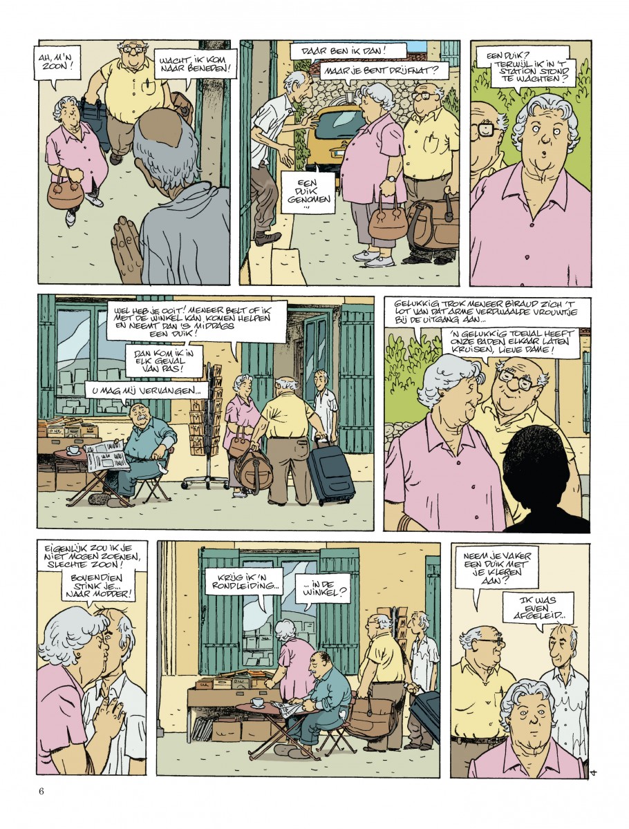 Philippe Manche heeft in een pittoresk Frans dorpje te midden van de wijngaarden rond Bordeaux eindelijk rust gevonden. Hij runt er de boekhandel die hij erfde van Robert en vult zijn vrije tijd met vispartijtjes met zijn vrienden en een liefdesrelatie per brief met Camille. Als de zomer aanbreekt, komen zijn moeder en zijn zoon de vakantie bij hem doorbrengen. De ontwapenende dialogen en meeslepende zachtmoedigheid van de eerlijke lui die Gibrat opvoert, zijn opnieuw roerend. Een gevoelige en opgewekte familiekroniek, wars van de tegenslagen van het leven. Scenario van Gibrat, de succesauteur van Het uitstel, Elke raaf pikt, Matteo, ...