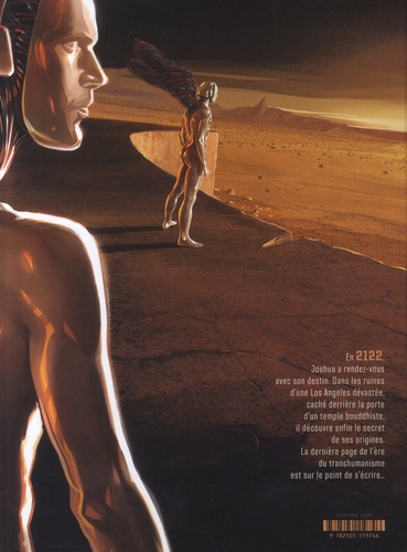 En 2060, à la télévision, Ray Katzinger, le patron mégalomane de Zehus entreprise, présente l'ultime étape de son projet Homo Deus : faire "naître" une IA consciente et évolutive, munie d'un corps de synthèse aux propriétés biomécaniques humaines. Il lui faudra près de 50 ans pour se transmuter lui-même, devenir le grand Zehus lumineux entouré de ses anges de la mort, et enfin donner corps à sa plus grande création... En 2122, à Redsalt Canyon, la bataille fait rage entre la communauté des puiseurs, les habitants de la vallée et les IA, plus ou moins humanoïdes, qui attaquent le village. Et la lutte fratricide pour le pouvoir entre Vittorio et Sylvio va atteindre son point de non-retour. Le jeune Joshua traverse le désert en portant une petite fille sur ses épaules. Dans ce qu'il reste de Los Angeles, il s'apprête à retrouver Namdak et Azul, le robot géant, pour découvrir toute la vérité sur ses origines, enfouie derrière les portes monumentales d'un temple bouddhiste protégé par une armée de moines... La gigantesque bataille entre les moines, guidés par un lama de pierre et d'ambre, et les anges électriques sera homérique. Suite et fin d'une saga spectaculaire pour "Elecboy" , la fantastique mini-série postapocalyptique et transhumaniste de Jaouen Salaün. Son scénario est servi par un dessin réaliste saisissant et des couleurs aussi spectaculaires que le final épique de cette série d'anticipation au souffle rare et aux thématiques très contemporaines.