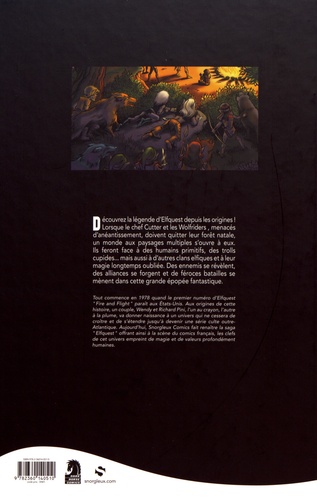 Découvrez la légende d'Elfquest depuis les origines ! Lorsque le chef Cutter et les Wolfriders, menacés d'anéantissement, doivent quitter leur forêt natale, un monde aux paysages multiples s'ouvre à eux. Ils feront face à des humains primitifs, des trolls cupides... mais aussi à d'autres clans elfiques et à leur magie longtemps oubliée. Des ennemis se révèlent, des alliances se forgent et de féroces batailles se mènent dans cette grande épopée fantastique. Tout commence en 1978 quand le premier numéro d'Elfquest "Fire and Flight" paraît aux Etats-Unis. Aux origines de cette histoire, un couple, Wendy et Richard Pini, l'un au crayon, l'autre à la plume, va donner naissance à un univers qui ne cessera de croître et de s'étendre jusqu'à devenir une série culte outre-Atlantique. Aujourd'hui, Snorgleux Comics fait renaître la saga " Elfquest " offrant ainsi à la scène du comics français, les clefs de cet univers empreint de magie et de valeurs profondément humaines.