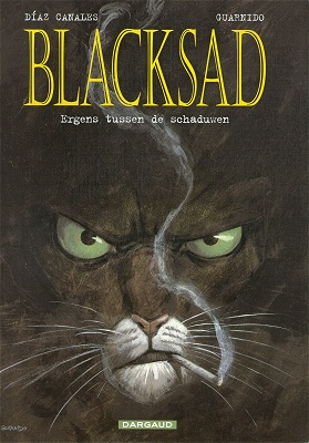 Gemiddelde score 4 / 5Het voorwoord van Régis Loisel doet ons alvast zin krijgen om deze reeks te ontdekken. Blacksad is duidelijk een hommage aan de film-noir. Bijvoorbeeld 'The Big Sleep' (1946) met Humphrey Bogart en Lauren Bacall. Maar wat een cynische wereld wordt ons hier als een spiegel voorgehouden! De gekozen dieren geven ons meteen het juiste karakter. Kwestie van geen tijd te verspillen. Politiek speelt ook hier geen mooie hoofdrol. Onze sluwe kater, privé-detective John Blacksad, heeft gelukkig het hart op de juiste plaats. Hij maakt wel al eens gebruik van een fake ID: J.H. Blackmore Debt Collectors. Antropomorfe dieren die ons al meteen een juist beeld geven van het personage. De prachtige tekeningen van Guarnido lijken wel film. Hij kiest zijn camerastandpunten met plezier. Filmtaal wordt stripverhaal. Het juiste perspectief kiezen. Het kleurenpalet zorgt voor de juiste sfeer. Ook vinden we sensuele prenten waar we al eens graag naar terugkijken. Verder knipogen bij de vleet: Batman, Jackson Pollock, Norman Rockwell, senator McCarthy, Roadrunner, Jack Kerouac (beatgeneration)... Blacksads sidekick Weekly, een 'topjournalist', verdient zeker een oscar voor beste bijrol. Het is regelmatig lang wachten op een nieuw album, maar als Juanjo Guarnido dan tussendoor 'Het goud van de zwendelaar' tekent, (scenario Ayroles) kunnen we hem dat met plezier vergeven.