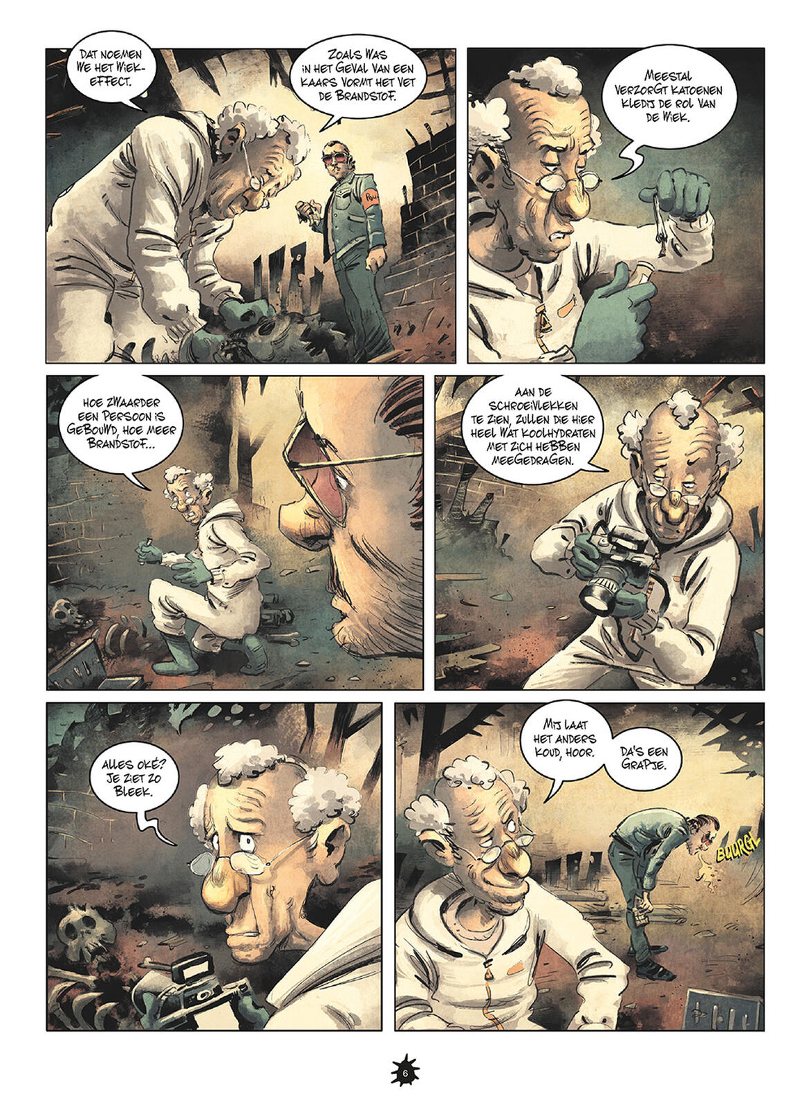 Deel 6, het slotalbum, volgt het verhaal van Eugène, de luidste mond in de brigade van de lijkenopruimers. "Ze vreten ons brood op! Ze pikken onze jobs in! M’n vuist in hun smoel. Meer verdienen ze niet! Wat moet ik? Kalmeren? Weet je wel tegen wie je het hebt? Ik ben Eugène. Degene die me komt vertellen wat ik wel of niet moet doen, die moet nog geboren worden."