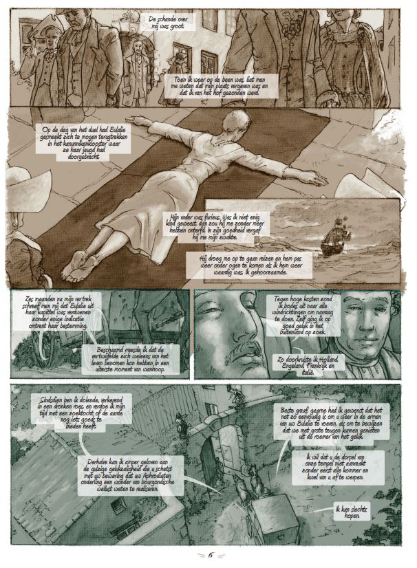 Van kamer naar kamer en van bed naar bed. Persoonlijke vrijheid begint met seksuele vrijheid. Daar draait het om in de libertijnse levensfilosofie, en daar draait het om in dit verhaal in vier delen. De ridder komt thuis na lange afwezigheid, stort zich in de armen van zijn oude leermeesteres in de liefde, en van menigeen in haar omgeving. Net als in Nederland wordt ook in Frankrijk literatuur verstript. Alleen kiezen Fransen dan natuurlijk voor erotische literatuur, pikant werk dat behoorlijk wat rooie oortjes opleverde! De Aphrodieten is van oorsprong een roman uit 1793 die vanwege de vrolijk losbandige strekking 'prima met één hand te lezen is', zoals men zei. Parijs zat in die tijd vol geheime genootschappen, en in dit verhaal gaat het om zo'n groep, 'De Aphrodieten'.