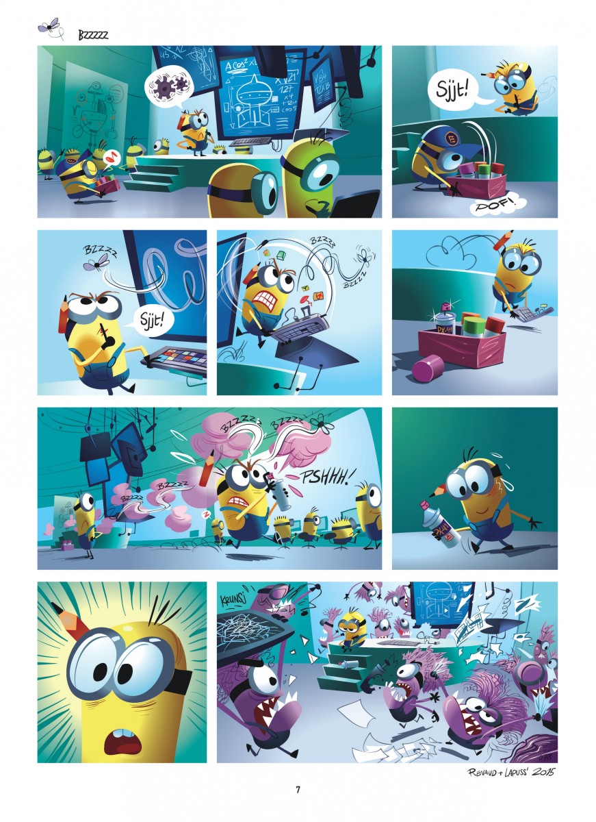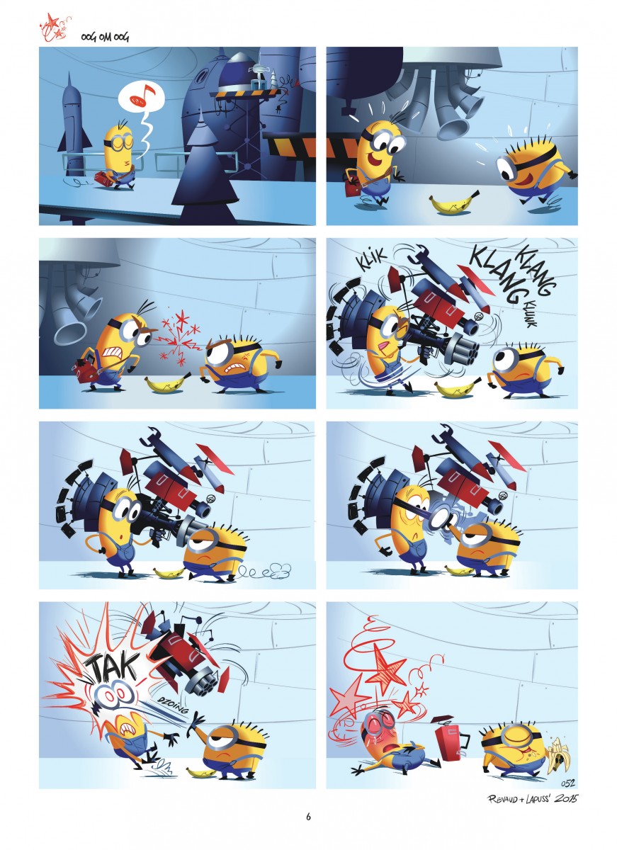 De Minions doken voor het eerst op in 2010, in de film Despicable me. Maar zoals wel vaker gebeurt, gingen de kleine nevenpersonages een eigen leven leiden. In 2015 leidde dat zelfs tot een film, wat waarschijnlijk hun besmettelijke en absurde lach verklaart. Na hun avontuur op het witte doek volgde een album onder het label Dupuis ... Tekenaar Renaud Collin brengt nu in zijn gekende, expressieve tekenstijl een tweede album waarin hij het karakter, de humor en de ‘taal’ van de wezentjes perfect weet te vatten. Ook weer - net als in deel 1 - in 1-paginagags. Opnieuw maken de Minions ruzie voor iets futiels als een banaan of voor een ijsje, maar werken ze samen als het er écht om gaat. Want ze moeten de krachten bundelen tegen de 'Evil Minions', vruchten die door genetische mutaties dom en gevaarlijk zijn geworden. Een album van de Minions is een dosis goed humeur voor de hele familie. En wie nog niet gebeten is door het Minions-virus: probeer je vooral niet te lang te verzetten.
