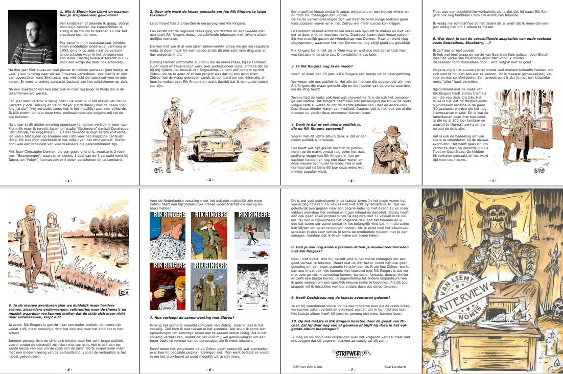 Exclusief interview met Simon Van Liemt naar aanleiding van het verschijnen van het 5de album van Rik Ringers Rik Ringers Commissaris Griot 8 pagina's waar je meer te weten komt over de tekenaar en de nieuwe avonturen van Rik Ringers met exclusieve schetsen speciaal voor Stripweb! Beperkte oplage.