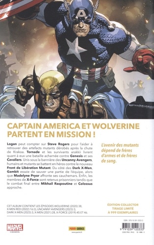 Captain America et Wolverine partent en mission ! Logan peut compter sur Steve Rogers pour raider à retrouver des artefacts mutants dérobés après la chute de Krakoa. Tomade et les survivants arakkii livrent quant à eux une bataille acharnée contre Genesis et ses Cavaliers. Unis sous la bannière des Uncanny Avengers, humains et mutants se battent en héros contre le nouveau Front de Libération Mutant. Du côté des Dark X-Men, Gambit essaie de sauver une partie de l'équipe, alors que Madelyne Pryor affronte ses cauchemars. Enfin, les membres de X-Force sont retenus prisonniers tandis que le combat final entre Mikhail Raspoutine et Colossus approche. L'avenir des mutants dépend de frères d'armes et de frères de sang.