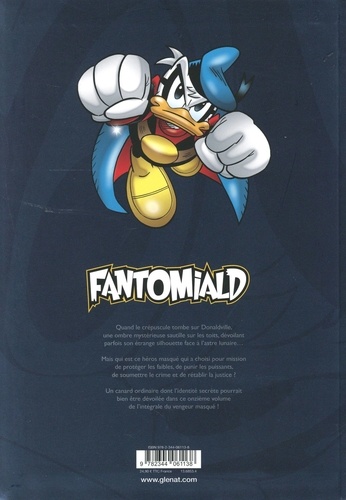 Tout sur le plus célèbre justicier de Donaldville ! Quand la nuit tombe sur Donaldville, une ombre mystérieuse bondit de toit en toit, dévoilant parfois sa silhouette faceà l'astre lunaire... Mais qui est ce héros masqué qui a choisi de combattre les puissants pour venir en aide aux faibles ? Un canard ordinaire et tout sauf vilain dont l'identité secrète risque bien d'être dévoilée quelque part dans ce onzième volume d'une intégrale consacrée à Fantomiald, le vengeur diabolique ! Retrouvez l'intégralité des histoires légendaires du plus célèbre justicier de tout Donaldville ! Présentée dans le même format que nos intégrales consacrées à Carl Barks, Don Rosa ou Romano Scarpa, cette collection présente l'ensemble des aventures de Fantomiald dans leur ordre chronologique d'apparition. Par ailleurs, un appareil critique détaillé permet d'approfondir plus encore sa connaissance du personnage. Vous saurez enfin tout sur le plus culte des super-héros Disney.