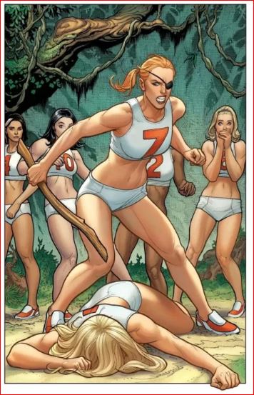 Frank Cho doet waar hij goed in is! Als er één ding is waar het Fight Girls niet aan ontbreekt, dan is het wel actie. Trouwens, het zou moeilijk zijn om iets te vinden dat tekortschiet in dit boek...Cho heeft een wereld gecreëerd waarin ‘Hunger Games’ een Las Vegas-sportboek ontmoet. Wanneer de Queen of the Galaxy plotseling verdwijnt, gaan tien ijzersterke vrouwen het tegen elkaar opnemen in een eeuwenoude wedstrijd om haar troon op te eisen. Om de uitdaging te winnen, moet elke deelnemer de gevaren van het ruige landschap van de planeet, de woeste roofdieren op en onder het oppervlak en hun mededeelnemers overleven. Er zijn geen grenzen in deze wedstrijd met hoge inzetten, vooral als blijkt dat een van de deelneemsters een infiltrant is die een grotere prijs op het oog heeft.