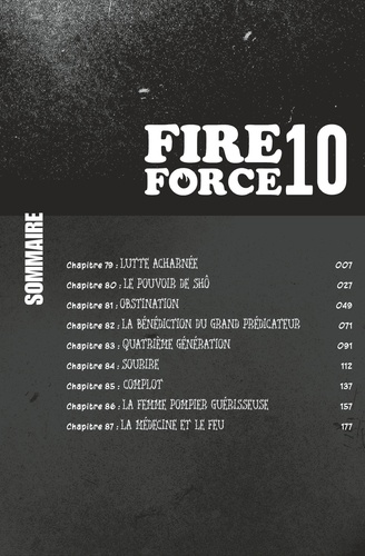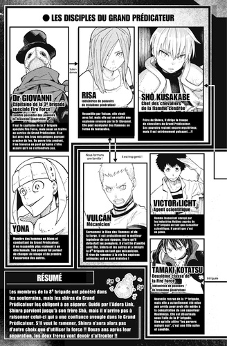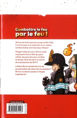 Shinra est enfin parvenu jusqu'à Shô. Mais il n'arrive pas à le raisonner et un violent combat éclate entre les deux frères !! Malgré l'aide de Licht, Shinra reste impuissant face à Shô qui peut utiliser ses pouvoirs pour arrêter le temps ! Quel est donc le secret de la puissance de Shô ? ! L'Adora Burst semble être la clé qui permettra de retourner la situation !! Shinra va devoir passer à l'étape supérieure !!