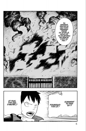 Un mystérieux individu s'attaque soudain aux pompiers durant le tournoi des nouvelles recrues. Il dit connaître la vérité sur l'incendie qui a décimé la famille de Shinra et la révélation qu'il va faire risque de sérieusement surprendre le jeune homme. Quant au capitaine Obi, il révèle le véritable but de la 8e brigade. Les choses s'accélèrent alors tout à coup avec un combat qui met aux prises la 8e et la 5e brigade !! Les pompiers seraient-ils les prochains ennemis ?! De nombreux mystères restent à éclaircir ! Shinra et ses camarades devront se serrer les coudes, et une fois de plus, ça va chauffer !!
