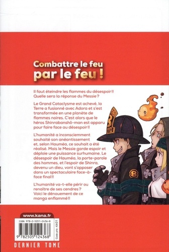 Il faut éteindre les flammes du désespoir !! Quelle sera la réponse du Messie ? Le Grand Cataclysme est achevé, la Terre a fusionné avec Adora et s'est transformée en une planète de flammes noires. C'est alors que le héros Shinrabanshô-man est apparu pour faire face au désespoir !! L'humanité a inconsciemment souhaité son anéantissement et, selon Hauméa, ce souhait a été réalisé. Mais le Messie garde espoir et déploie une puissance surhumaine. Le désespoir de Hauméa, la porte-parole des hommes, et l'espoir de Shinra, devenu un dieu, vont s'opposer dans un spectaculaire face-à-face final !! L'humanité va-t-elle périr ou renaître de ses cendres ? Voici le dénouement de ce manga enflammé !!