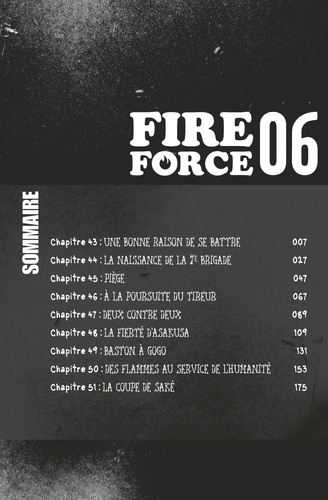 Les sbires du Grand Prédicateur ont semé la zizanie, si bien que la 8e et la 7e brigade vont devoir s'affronter ! Quelle sera l'issue de ce violent combat ? Tout Asakusa se retrouve plongé dans le chaos ! Alors que le quartier est en proie aux flammes et que les hommes en blanc passent à l'attaque, comment vont réagir la 8e et la 7e brigade ? Comment Shinra et ses camarades vont-ils se sortir de ce mauvais pas ?! De plus, de nouvelles Torches humaines vont apparaître ! Shinra va encore une fois devoir mettre les bouchées doubles !!