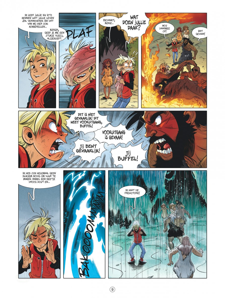 Nu de stam van homo sapiens Frank eindelijk heeft aanvaard, is het tijd om zijn nieuwe adoptiefamilie wat beschaving bij te brengen. Hij is het beu om zijn tanden stuk te bijten op rauw vlees en probeert het stamhoofd te overtuigen om vuur te gebruiken. Maar zijn pogingen met houtsnippers en vuurstenen lopen uit op een sisser, tot grote hilariteit van de oermensen die niet echt moeten weten van technologische vooruitgang. Als het dan toch lukt, rookt hij de halve stam uit. Dat is de druppel voor het stamhoofd. Frank wordt weggestuurd en mag pas terugkeren als hij zich een volleerd jager toont. Nieuwe jeugdreeks vol humor en avontuur. FRNK is het verhaal van Frank, een weesjongen van dertien die op zoek gaat naar zijn ouders en in de oertijd wordt gekatapulteerd. Wervelend scenario van creatieve duivel-doet-al Olivier Bocquet (De toorn van Fantomas) die stripscenario's afwisselt met televisiewerk en romans.