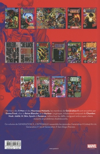 Héritiers des X-Men et des Nouveaux Mutants, les membres de Génération X sont encadrés par Emma Frost, alias la Reine Blanche, et le Hurleur. Le groupe, initialement composé de Chamber, Husk, Jubilé, M, Skin, Synch et Penance, relève tous les défis, naviguant entre super-vilains mutants et problèmes d'adolescents.