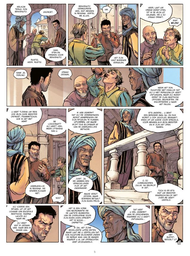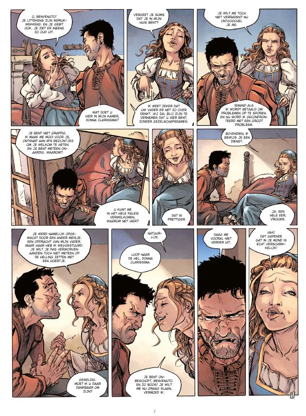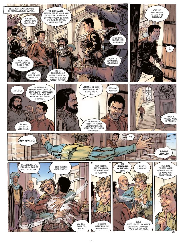 Benvenuto mag eindelijk de vochtige kerkers van Ressina verlaten en wordt bij zijn aankomst in Ciudalia als een held onthaald. Tijdens zijn herstel kijkt hij vanop afstand toe hoe zijn meester, de machiavellistische Podestat, complotten smeedt. Op het eerste gezicht lijkt de rust weergekeerd in Ciudalia. Maar de storm nadert, Benvenuto voelt het. Al gauw kan alleen zijn moordenaarsinstinct hem nog redden. Deel 3 van een veelbelovende heroic fantasyreeks. Frédéric Genêt, de talentvolle tekenaar van Samoerai. Op basis van de roman Gagner la Guerre van Jean-Philippe Jaworski.