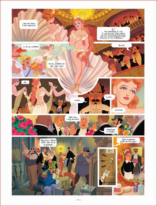 verhaal in drie delen in de wereld van de reeks = het kasteel van de sterren. deel 1/3 Dankzij de inspanningen van de familie Dulac uit ‘Het kasteel van de sterren’ hebben de Europese mogendheden de ruimtevaart en de ether die haar motoren mogelijk maken onder de knie. In Engeland en Frankrijk onder Napoleon III slagen erin zich Venus toe te eigenen. Dit nieuwe eldorado dient zowel als gevangenis en speelterrein voor de edelen op zoek naar avontuur. Dankzij haar populariteit en charme krijgt Heleen Martin het voorrecht om naar de felbegeerde planeet te reizen. Ze flirt met de hertog van Chouvigny die verantwoordelijk is voor de expeditie. Ze hoopt te profiteren van haar verblijf op Venus om een spoor te vinden naar haar geliefde die daar gevangen is. Striptekenaar Jung Etienne ( Frankrijk, °1964) kennen we ook als de tekenaar die de laere delen van de reeks Het kasteel van de sterren mee tekende. deze stripreeks is hierop gebaseerd. Stripscenarist Ayroles Alain ( Frankrijk, °1968) schreef ook volgende stripreeksen of delen hiervan D Garulfo Het goud van de zwendelaar Sabels en Galjoenen Zeven