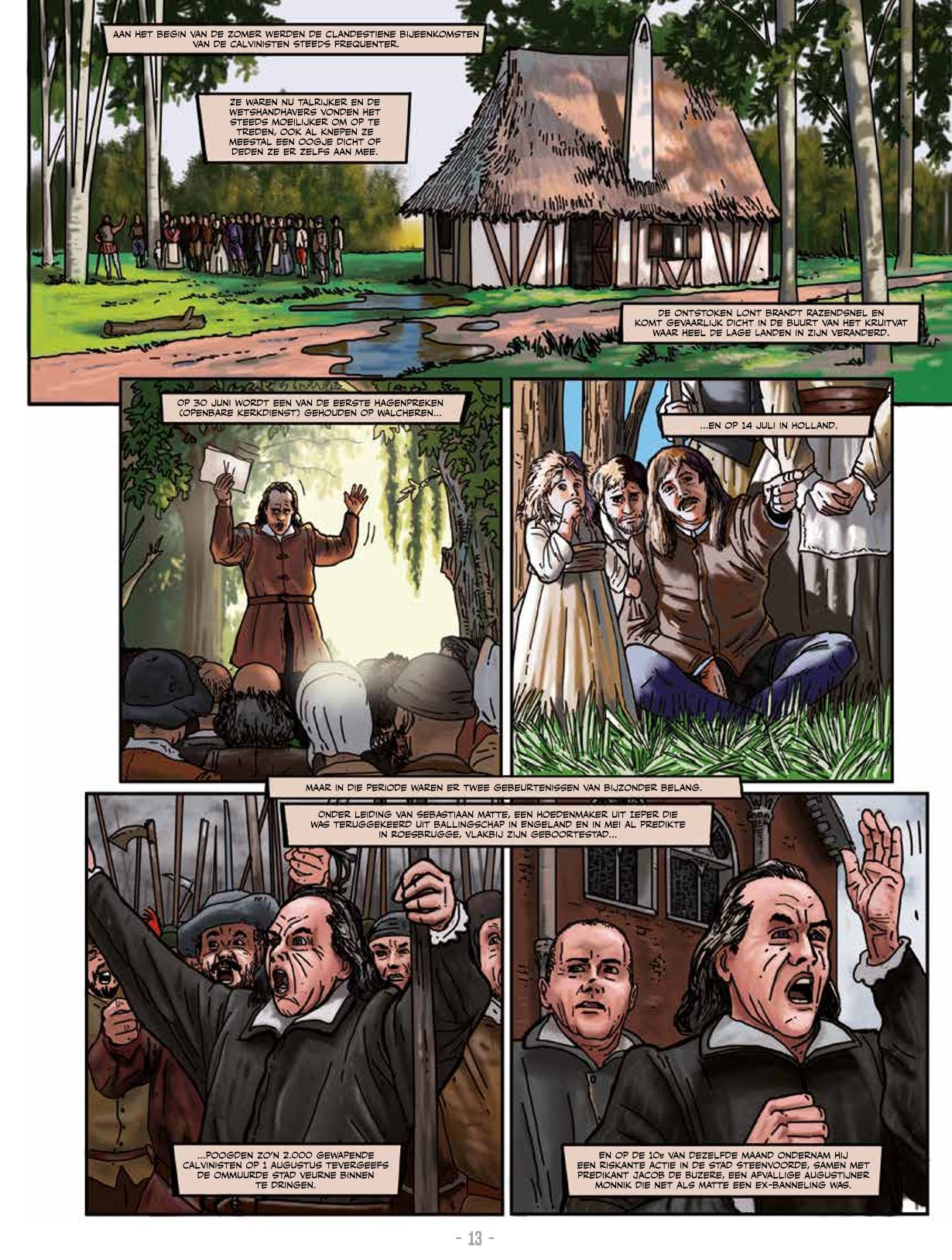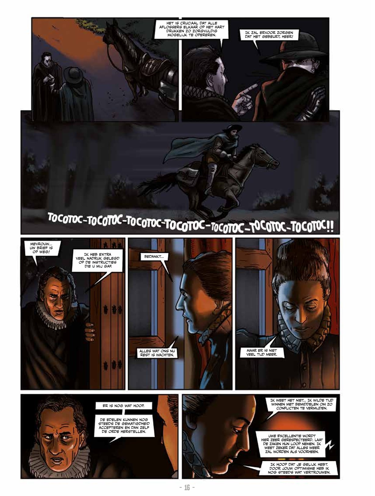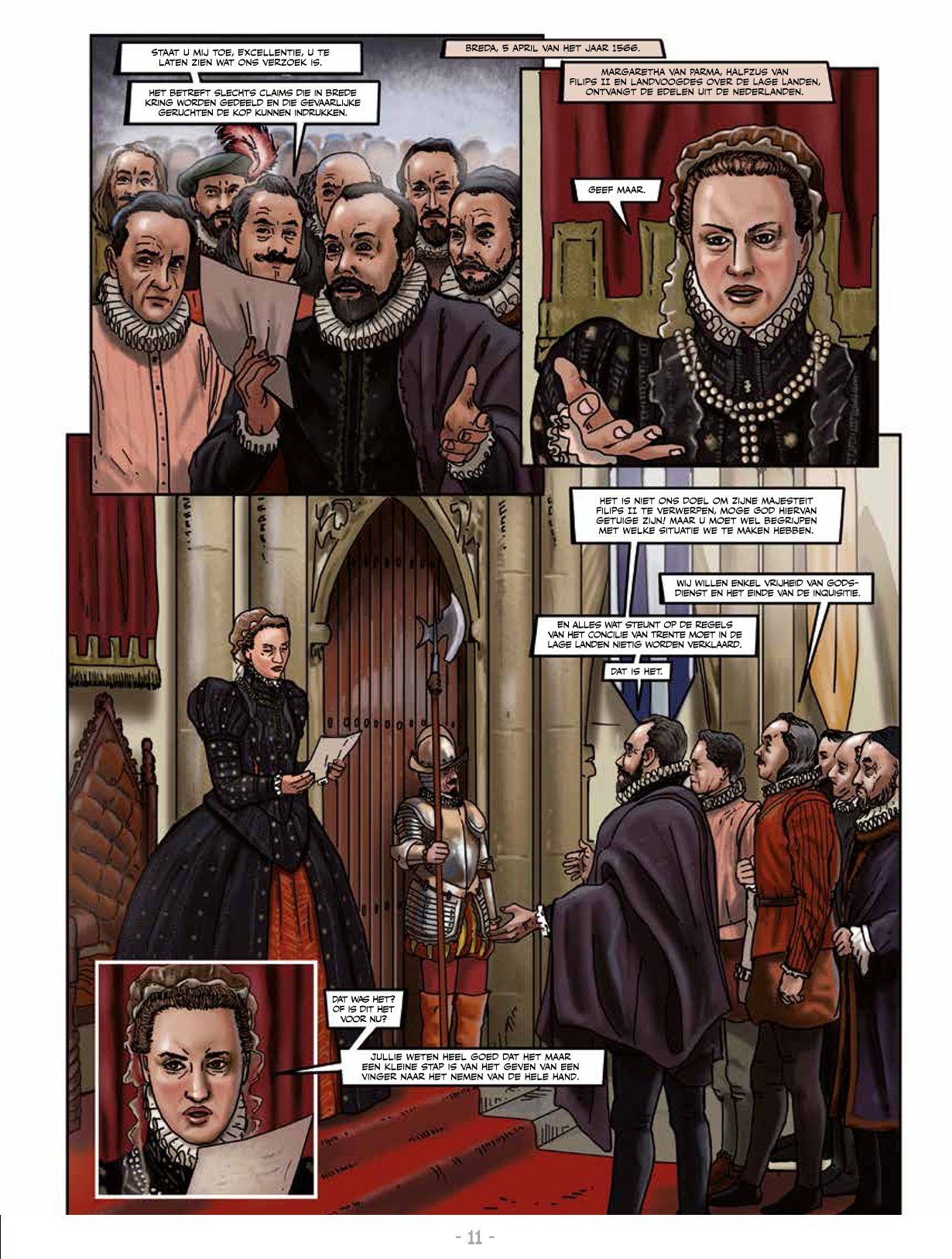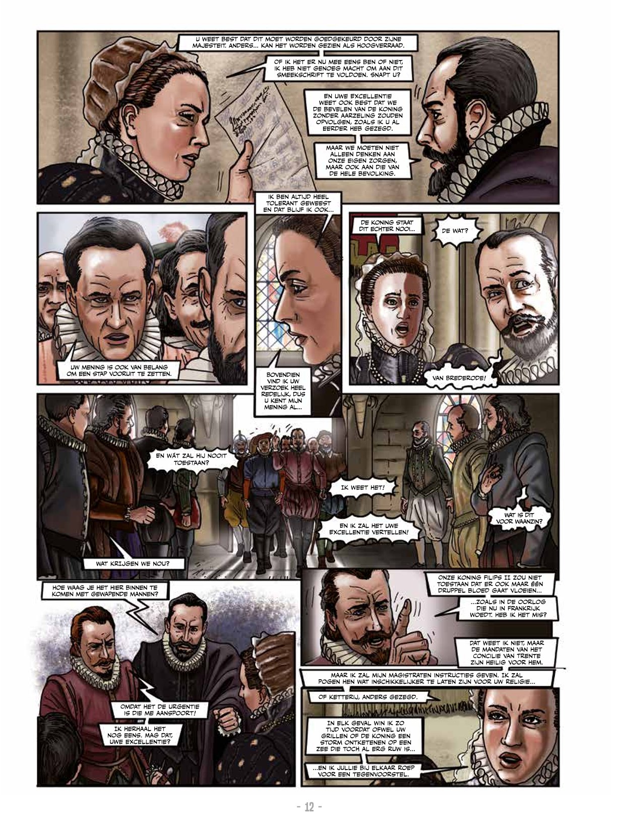 Het is 1566 als Alva naar de Nederlanden wordt gestuurd. Daar heeft dan net de Beeldenstorm plaatsgevonden. De Spaanse koning is woedend over de vernielingen die protestanten hebben aangericht in katholieke heiligdommen en stuurt daarom een van zijn krachtigste onderdanen naar het noorden. Alva krijgt een leger van 10.000 man mee om de opstand mee te onderdrukken en komt in oktober 1567 aan in Brussel. Alva vervangt Margaretha van Parma als landvoogd en begint onmiddellijk met de vervolging en onderdrukking van de protestantse ketters. Hij treedt met ijzeren vuist op om orde te scheppen. De belangrijkste leiders worden vervolgd en berecht in de raad van beroerten onder wie de voormalige bondgenoten van de Spaanse Kroon. Willem van Oranje begint samen met zijn volgelingen een eigen oorlog tegen Alva met een reeks invasies en aanvallen. Ze beginnen met het beleg van Roermond, het begin van de Tachtigjarige Oorlog... De hertog van Alva en de 80-jarige Oorlog Tekst & tekeningen: Antonio Gil