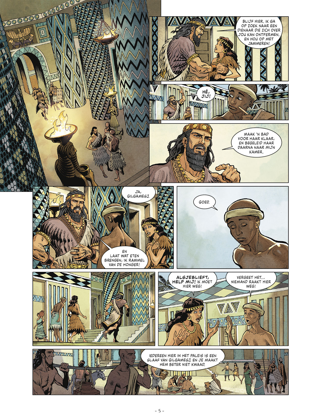 Een nieuwe trilogie in de collectie “De wijsheid van mythes” Met Gilgamesj gaan we nog wat verder terug in de tijd, naar een van de eerste echte heldendichten Clotilde Bruneau weet met haar scenario’s telkens de kern van de mythe te raken– met uitgebreid dossier over de betekenis van de mythe In het oude Mesopotamië regeert de machtige koning Gilgamesj als een tiran over de stad Uruk. Zijn onderdanen worden gek van zijn gewelddadige en hoog moedige gedrag en zij smeken om goddelijke genade. De goden besluiten daarop een alter ego te scheppen voor de koning, in de gedaante van Enkidoe, die op alle punten op Gilgamesj lijkt. Hij is de enige die met hem kan wedijveren wat kracht en moed betreft. Terwijl hij leert een beschaafd man te worden , ontdekt Enkidoe wat voor wandaden zijn dubbelganger pleegt. Een confrontatie lijkt onafwendbaar...