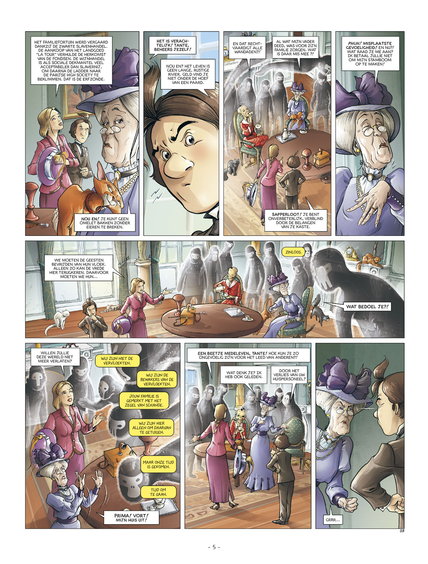De huiselijke problemen van Flora’s tante uit Bordeaux gingen veel verder dan de fenomenen van een spookhuis. Flora had ontdekt dat haar welgestelde familie geld had verdiend met slavenhandel. Een pijnlijke openbaring voor de moderne, humanistische jonge vrouw. Het onderzoek leidde tot een aantal verrassende, plotselinge en onverwachte ontdekkingen. De overleden moeder van Flora, die zich met het onderzoek moeide in de gedaante van een spraakzame, dartele Egyptische mummie. Doorgaans houden geesten van oude familieverhalen, maar Flora en Hugo vermoeden dat deze zaak hen naar nog akeligere mysteries zal leiden. Het agentschap Aspis krijgt opnieuw te maken met het ongewone, het ongewoon ongewone... Deze reeks werd eerst getekend door Jacques Lamontagne (bekend van De Druïden en Wild West) en vanaf deel 5 door Emmanuel Despujol. Deel 8 is het laatste album van de toffe, ongewone detectivereeks.