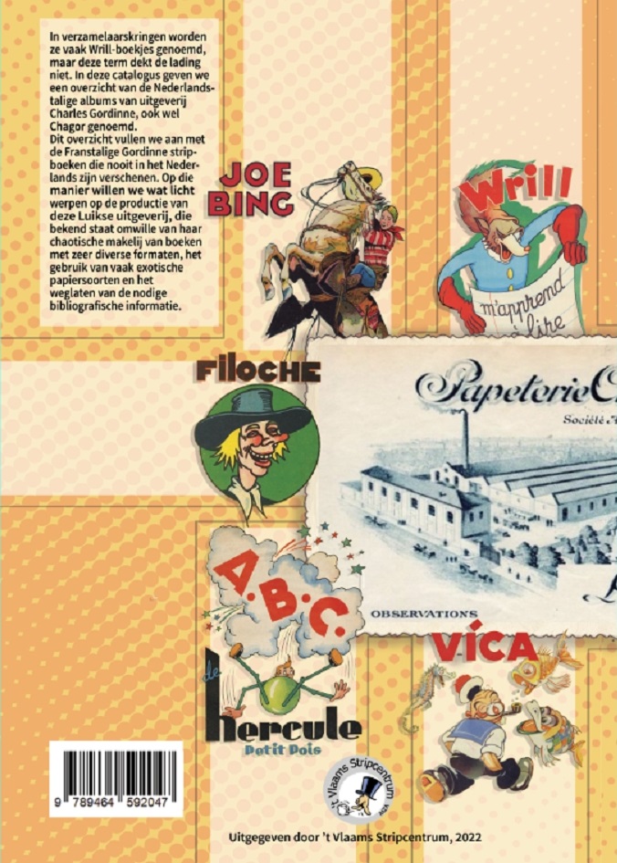 In verzamelaarskringen worden ze vaak Wrill-boekjes genoemd, maar deze term dekt de lading niet. In deze catalogus geven we een overzicht van de Nederlandstalige albums van uitgeverij Charles Gordinne, ook wel Chagor genoemd. Dit overzicht vullen we aan met de Franstalige Gordinne stripboeken die nooit in het Nederlands zijn verschenen. Op die OE wapen willen we wat licht werpen op de productie van deze Luikse uitgeverij, die bekend staat omwille van haar chaotische makelij van boeken met zeer diverse formaten, het gebruik van vaak exotische papiersoorten en het weglaten van de nodige bibliografische informatie.