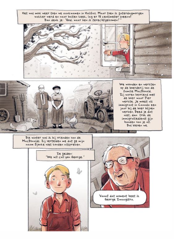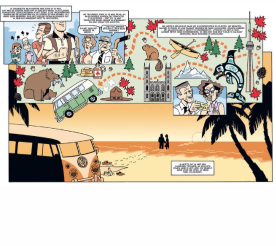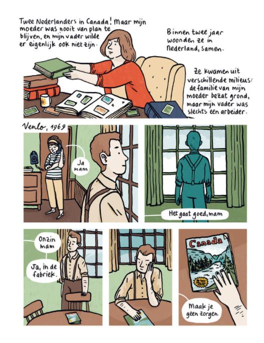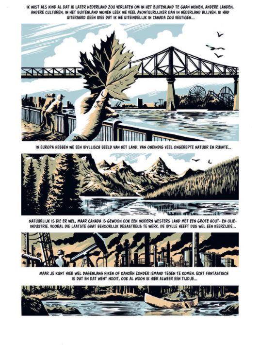 In opdracht van de Nederlandse Consul in Canada werd Aimée de Jongh gevraagd om een team van Nederlandse kunstenaars te leiden, die de biografieën van tien immigranten in Canada zouden visualiseren. Wanneer, waarom en hoe verlieten ze hun land van herkomst om een nieuw leven te zoeken in de uitgestrekte wildernis van Canada? Wat hadden ze verwacht en wat vonden ze uiteindelijk? Met strips van: Aimée de Jongh, Anne Stalinski, Emma Ringelding, Erik de Graaf, Erik Kriek, Floor de Goede, Hanco Kolk, Jordi Peters, Mei-Li Nieuwland en Paul Teng. Meer dan een miljoen Canadezen hebben Nederlandse voorouders. Dit betekent dat heel veel Nederlanders familie in Canada hebben. Wanneer, waarom en hoe verlieten die hun geboortegrond? Wat waren hun verwachtingen en wat hebben ze uiteindelijk gevonden? Kortom: wat zijn hun verhalen? Aan tien van onze beste stripauteurs werd gevraagd een van die verhalen tot leven te brengen. Hun antwoord leidde tot dit boek, dat bewijst hoe het beeldverhaal als geen ander medium op een toegankelijke en artistieke wijze persoonlijke verhalen kan verbeelden. deze versie bestaat ook in het Engels! indien interesse hiervoor graag ons mailen aub?