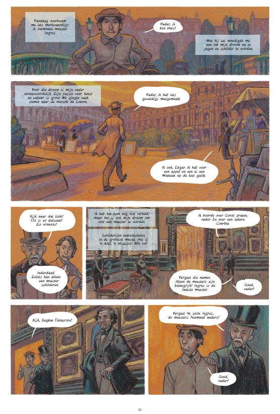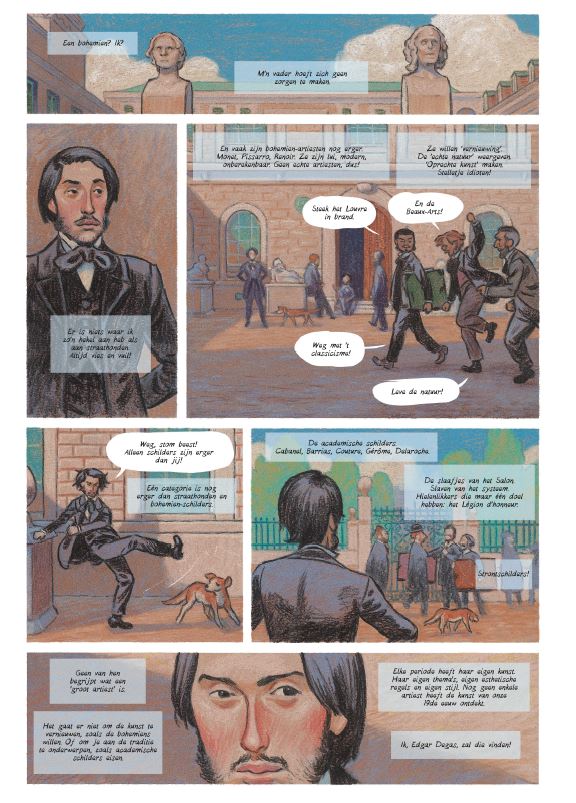 Stripscenarist Rubio kennen we ook van volgende strips die hij schreef • De Fotograaf van Mauthausen • Monet-op zoek naar het licht • Django Goed nieuws voor de fans want eind dit jaar verschijnt terug een nieuwe strip over de schilder Degas, van de hand van de zelfde auteurs, schrijf je nu in en we houden je als eerste op de hoogte • Degas Striptekenar Efa kennen we dan weer van volgende reeksen die vertaald geweest zijn, jammer genoeg zijn niet alle reeksen van hem vertaald. • Degas • Monet-op zoek naar het licht • Alter Ego ( hier tekende hij enkele albums waaronder ook het laatste album deel 8 die nooit vertaald werd!!) inbhoud= Edgar Degas was de grondlegger van de impressionistische beweging waarvan hij een van de meest genadeloze critici was. Te bohemien voor de bourgeois en te bourgeois voor de kunstenaars… een man van paradoxen. Een eenzaat die hield van een enkele vrouw, zonder haar ooit het hof te maken. Aan het einde van haar leven duik je als lezer, in haar gezelschap, in de schriftjes van Degas om het mysterie te doorgronden van dat genie vol tegenstrijdigheden.