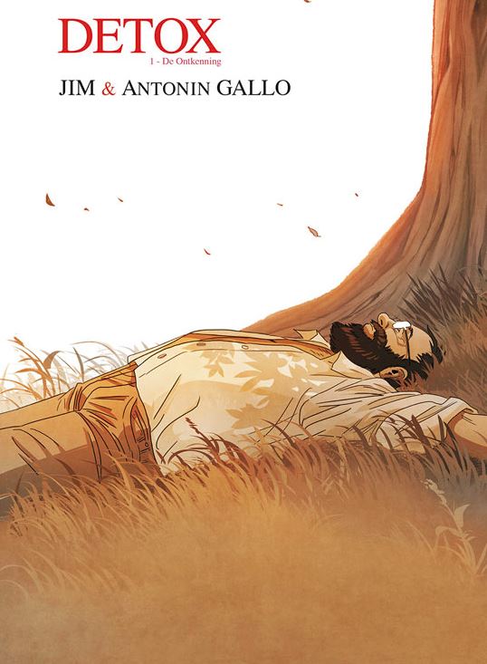 10 dagen zonder telefoon, dieet, zonder dak, zonder WiFi, zonder vrienden… zegt het jullie iets?? Jim, auteur van de succes reeks “ een nacht in Rome “ levert hier een reflexie op onze huidige maatschappij via het verhaal van een detox stage van zijn hoofdpersonage, een druk bezet zakenman. Gebaseerd op een echt gebeurd verhaal van een vriend van Jim. Natuurlijk is hele gebeuren een fictie maar met hier en daar waargebeurde situaties zoals het dieet op basis van thee, het afnemen van de telefoon,… . Jim laat ons in het eerste deel kennismaken met Matthias die constant vecht met zijn demonen en alles ontkent staat op punt van een Burn-out! In het verhaal hecht je je vrij gemakkelijk met het aandoenlijk personage die vrij aandoenlijk is, aar Jim verzekerd ons dat in het tweede deel hij meer actie voorzien heeft voor onze vriend. Het eerste deel heet “ de ontkenning” en het tweede deel zal “ de aanvaarding “ heten. Dit zegt alles. Het doel van Detox is niet om een oplossing te geven maar het verhaal te vertellen van een zoektocht naar oplossingen, wat veel waardevoller is, volgens Jim. Jim heeft veel plezier bij het schrijven van deze strip omdat hij hierdoor wat afleiding krijgt van de druk bij het schrijven van “ Een nacht in Rome”, het helpt om wat te ont-stressen en samen te werken met Gallo ( Kleuren en mede-tekenaar decors/landschappen) een strip waarin hij meer vrijheid voelt. Een strip die je toelaat te ervaren wat het is om 10 dagen van de wereld afgesloten te zijn maar dan in een tijdspanne van een strip. Mathias leeft aan 200 per uur totdat zijn arts hem adviseert zijn voet op de rem te zetten. Zonder dat riskeert Mathias groot. Hij besluit een speciale stage te lopen. Tien dagen lang geen computer, geen telefoon. De natuur zover het oog reikt. Een pauez in zijn leven om te vinden wat hij werkelijk is in de diepten van hem. Maar wat houdt iemand zich bezig wanneer men zijn e-mails niet om de tien minuten hoeft te controleren? Is er een leven zonder 4G? Zonder de urgentie, zonder de overvloed van alles wat bewijst dat we bestaan?