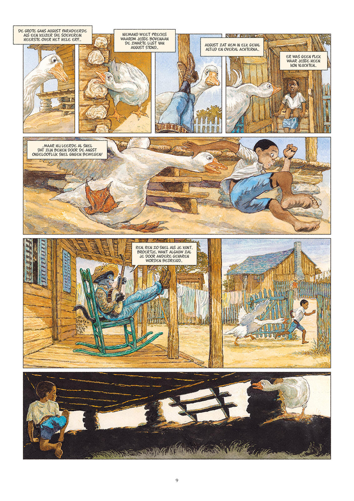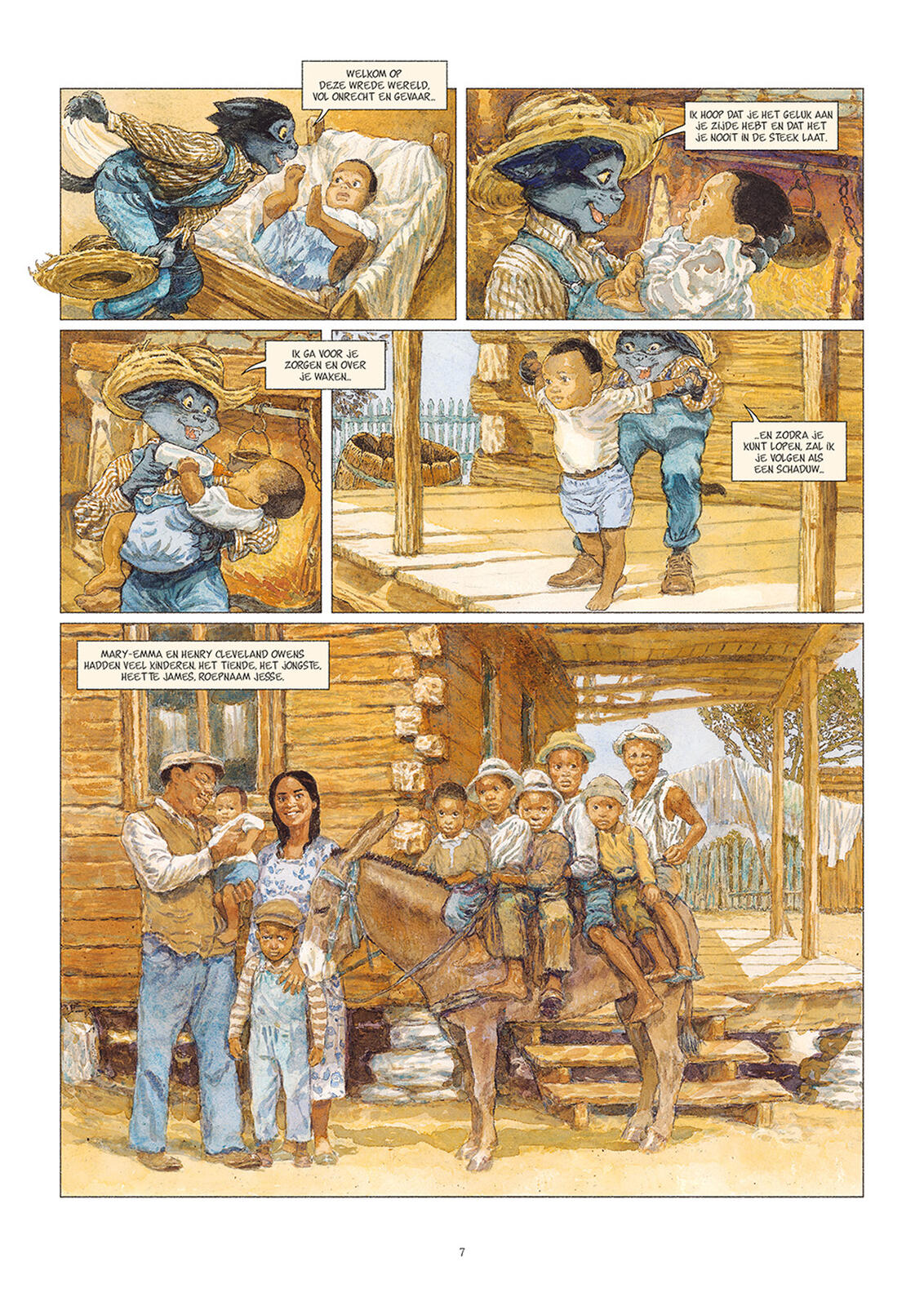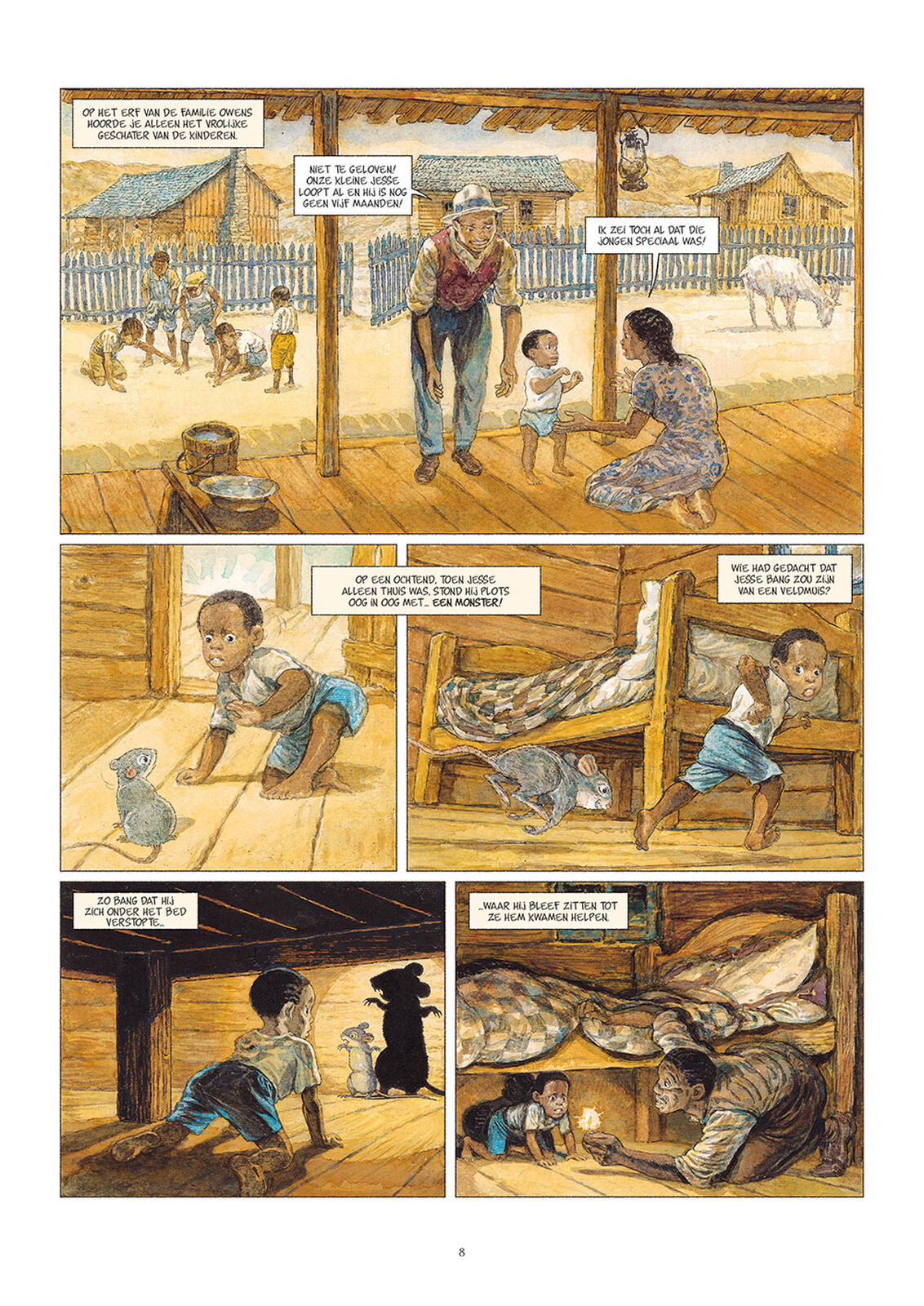Om dit verhaal van een jongen die altijd rende te vertellen, achtervolgd door zwermen sprinkhanen, een beer, politieagenten, de Ku Klux Klan en later atleten, koos Gradimir Smudja voor fantasie, humor en groot spektakel. Hoe kan men niet verbaasd zijn door de prachtige tekeningen van deze kunstenaar? Norman Rockwell is nooit ver weg. En als er een kat nodig is om dit verhaal te vertellen, is het om ons jeugdige hart weer tot leven te wekken.