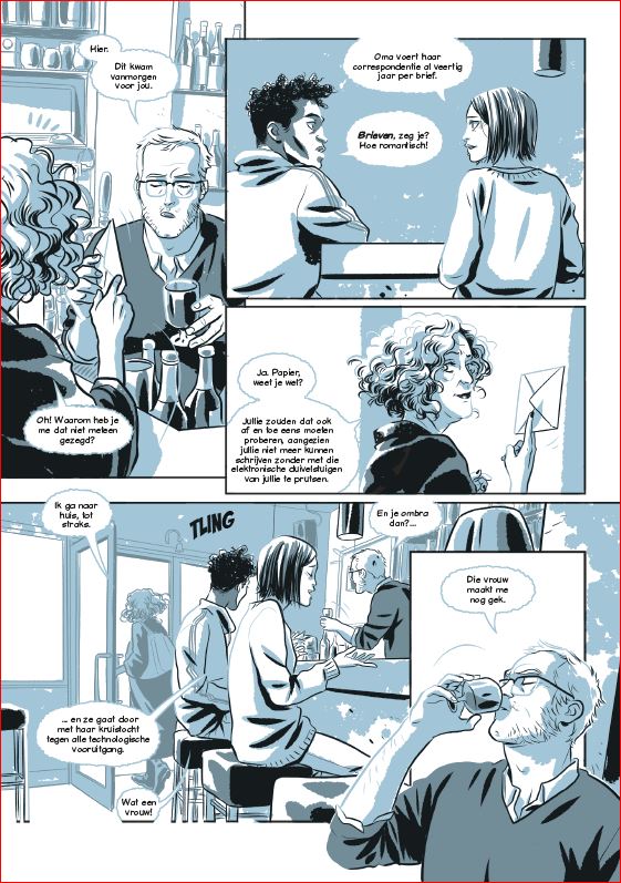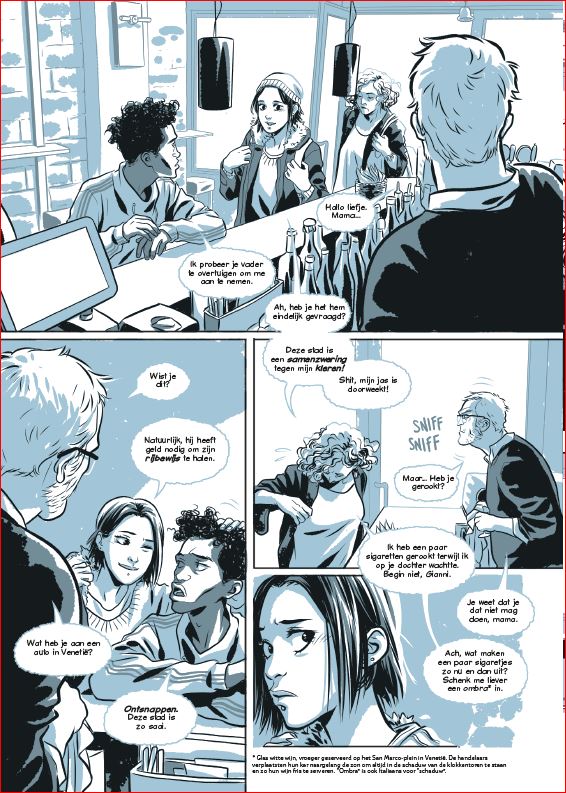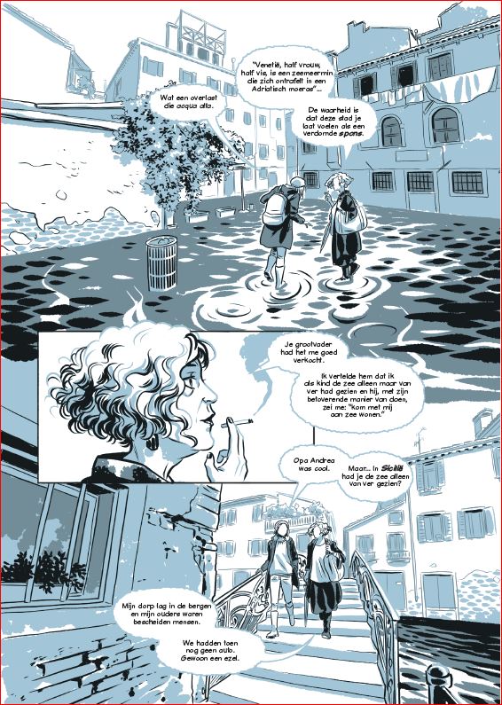 Gemiddelde score 5 / 5Leef alsof... Vanuit Sicilië waait de zuidenwind, de sirocco, zijn hete lucht naar het klamme Venetië. Al die warmte komt er samen in het café, genaamd naar de gelijknamige wind. De uitgeweken Siciliaanse cafébaas Gianni laat het er leven en bruisen. Maar privé cijfert deze laat uit de kast gekomen veertiger zich volledig weg. Al zijn liefde gaat naar zijn dochter Mia die een prima kans maakt om toegelaten te worden op een prestigieuze balletschool. Alsof zijn leven nog niet druk genoeg is, is ook zijn vrijgevochten moeder Elsa bij hem ingetrokken. Ook zij is de grootste fan van haar kleindochter, maar toont haar warmte net iets anders dan haar zoon. Hoe dan ook slagen de drie generaties er al bij al goed in om samen te leven onder één dak. Maar dan krijgt Elsa onverwachts nieuws. De Italiaan Giulio Macaione is een subtiele kok. Hij maakt het zichzelf nochtans niet gemakkelijk met zijn ingrediënten voor zijn jongste graphic novel. Enerzijds vertelt hij een verhaal dat bol staat van de grote emoties, zoals rouw, liefde, hoop en familie. Anderzijds kiest hij voor wel heel opvallende personages die zo woke zijn dat zelfs de cast van Sex Education er bleek bij wegtrekt. De homofiele vader, de vrijgevochten moeder die gehuwd was met een veel oudere man, de typische balletstress van een zoekende tienerdochter, haar zwarte vriendje,... Wat echter heel makkelijk kon ontsporen in een Italiaans overgeacteerd drama, houdt hij toch aardig in toom. De Siciliaan wikt en weegt zijn dialogen. Vaak laat hij enkel de tekeningen spreken. En daarmee scoort hij volop. Zijn stijl is ragfijn en boordevol details. Wat al snel te barok kan overkomen, wordt weer geneutraliseerd door het subtiele kleurgebruik van blauwgrijze - en okertinten. Maar de mayonaise pakt. We geloven zijn stijl. We geloven zijn verhaal. We geloven dat leven belangrijker is dan bestaan. Macaiones boodschap vat de tijdsgeest perfect samen. Zelfs Nederlands bekendste poëet vatte het onlangs nog zo samen: Pak het leven. Pak alles en ga ermee op pad. En leef alsof het je laatste dag is." Sirocco is de eerste strip van het nieuwe Lauwert Uitgeverij. Het is een eigenzinnige keuze. Ongegeneerd emotioneel, maar toch meeslepend en getekend in een uiterst toegankelijke stijl. Bovendien is de uitgave perfect verzorgd, eerlijk geprijsd en prima vertaald. Als deze Sirocco de toetssteen is van hun vertaalselectie, staan ons nog mooie dingen te wachten. WOUTER PORTEMAN"