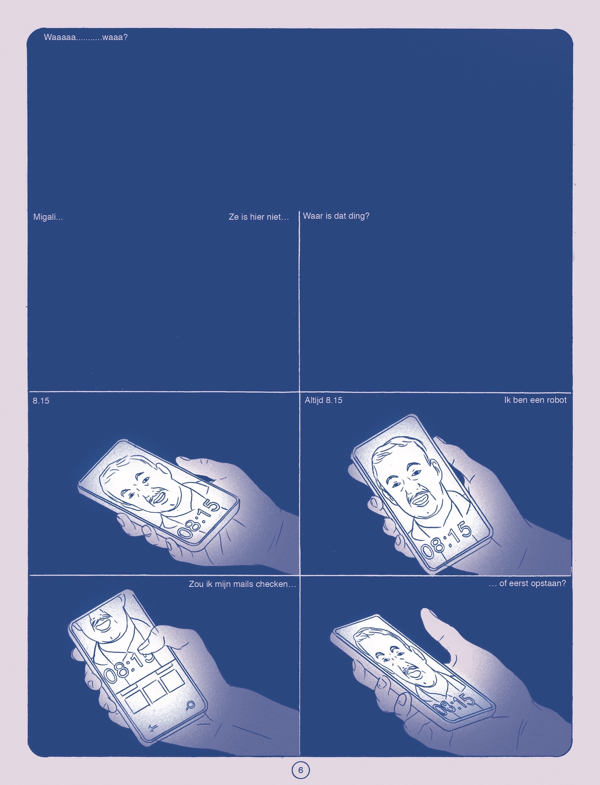 Wel, Thibault (bijna 36) zit op zijn vriendin Migali te wachten die voor een project in Afrika zit en morgen is hij jarig. Hij heeft een dringende opdracht van Antoine. Thibault is typograaf en moet een font (lettertype) ontwerpen voor een nieuw magazine. Van een lettertype-ontwerper mogen we wel verwachten dat alle woorden duidelijk leesbaar zijn en niet plots afgeknipt worden!