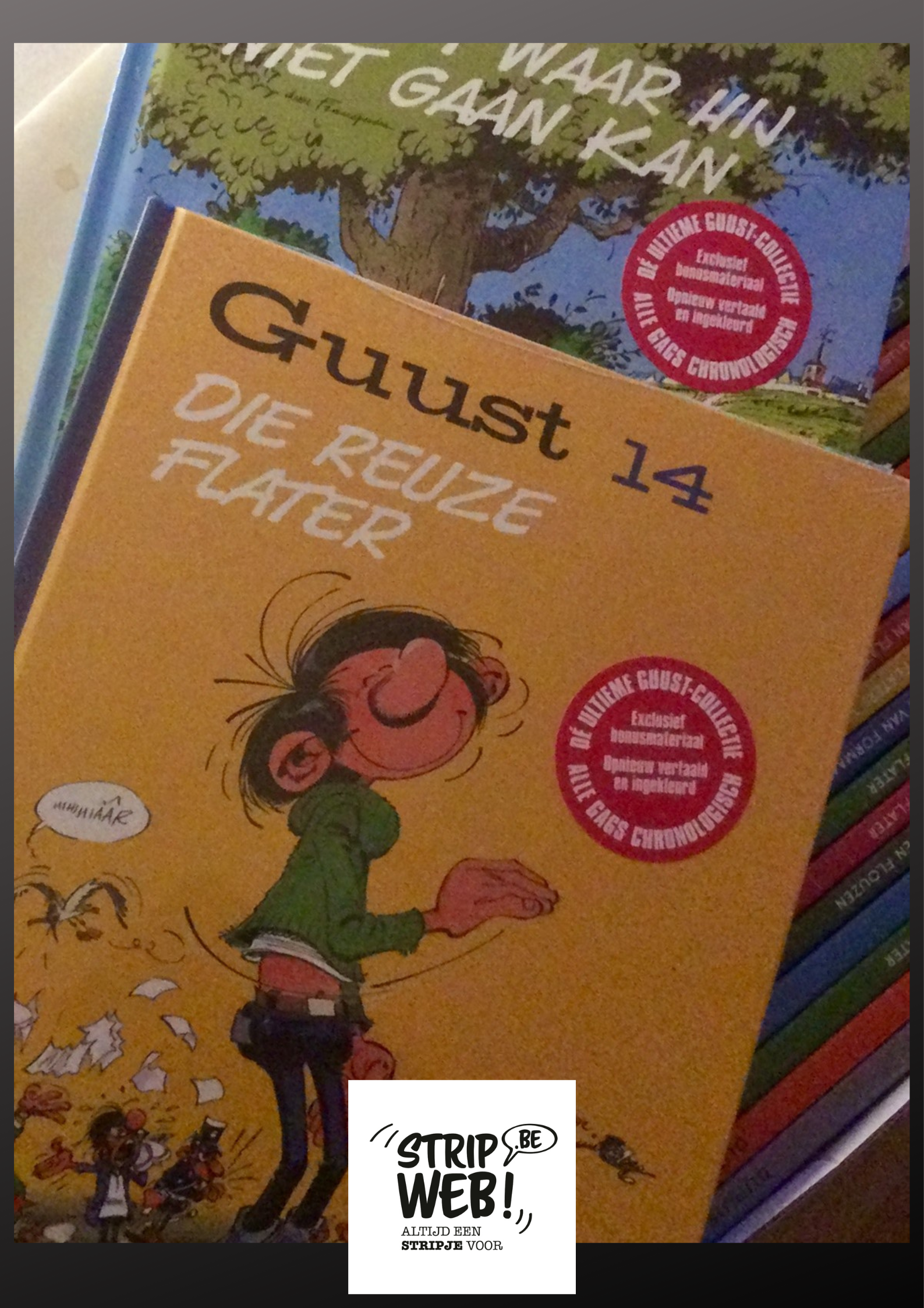 Chronologisch 21 delen , verpakt in een mooie doos ( geen box) met extra een dossier met contracten van Guust). De boeken zijn normaal € 19.00 verkoop per stuk. ( verkoop was € 399.00) Nu verkoop voor de gehele set € 179.95 Zéér Beperkte voorraad !! Guust is een uitvinder met een grenzeloze verbeelding. Een liefhebber van ongewone huisdieren. Een manusje van alles (en van niets). De meest onhandige kantoorhulp, die alleen bij uitgeverij Dupuis terecht kon. Hij flatert vol goede wil en is goudeerlijk. Hij is de ultieme antiheld en was het favoriete personage van Franquin. Guusts ongeremde humor en dromerige onbevangenheid gingen generaties recht naar het hart. Herontdek nu àl zijn flaters in deze complete en ultieme heruitgave! Dé ultieme heruitgave: alle gags chronologisch in hardcover met een nieuwe cover en nooit eerder verschenen illustraties. Een volledig opgefriste vertaling en helemaal opnieuw geletterd. Drukfilms geremasterd en opnieuw ingekleurd: scherper en gedetailleerder dan ooit.