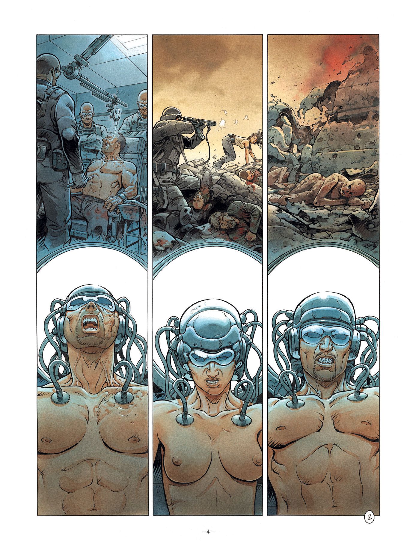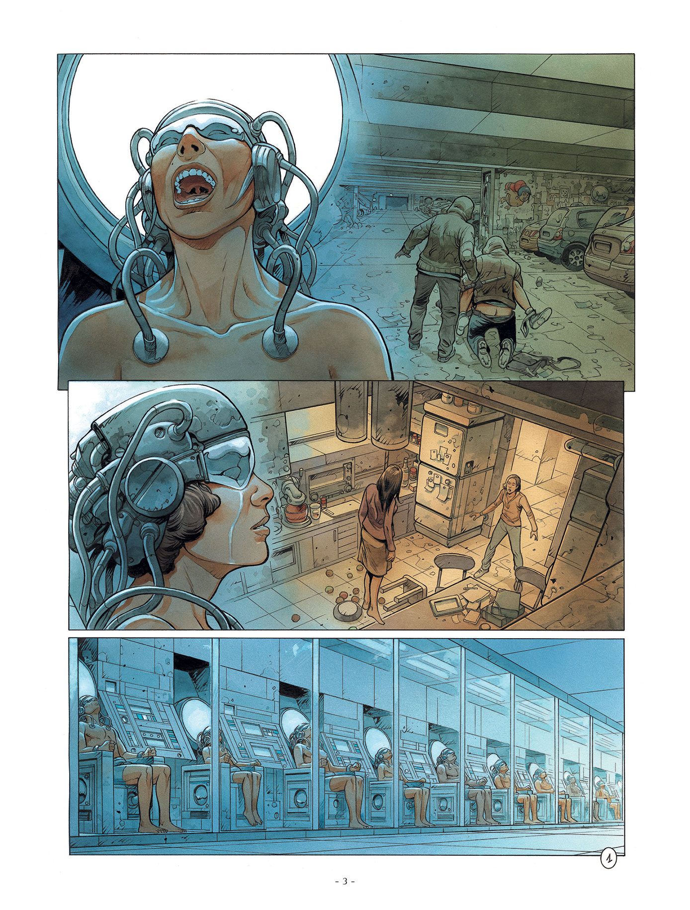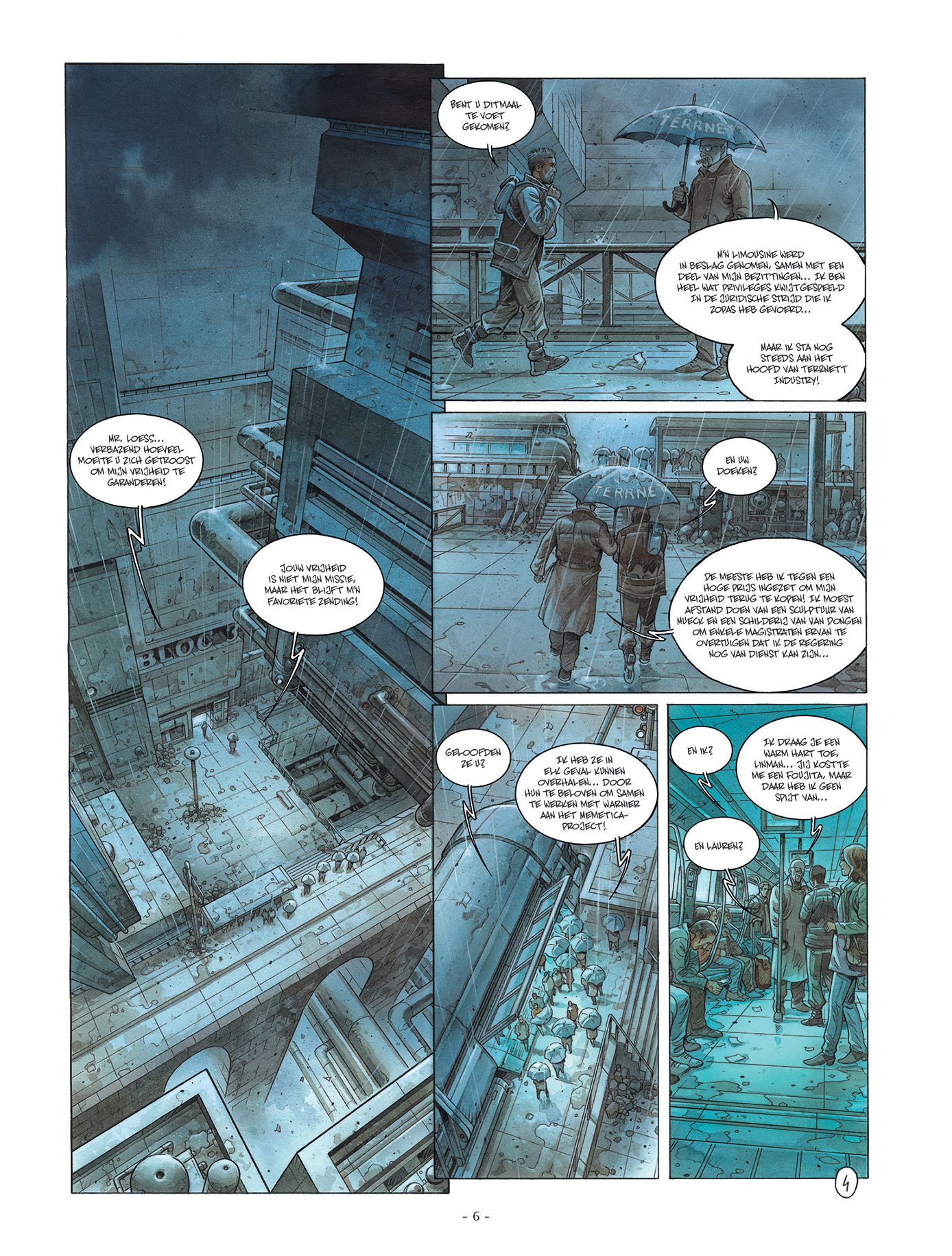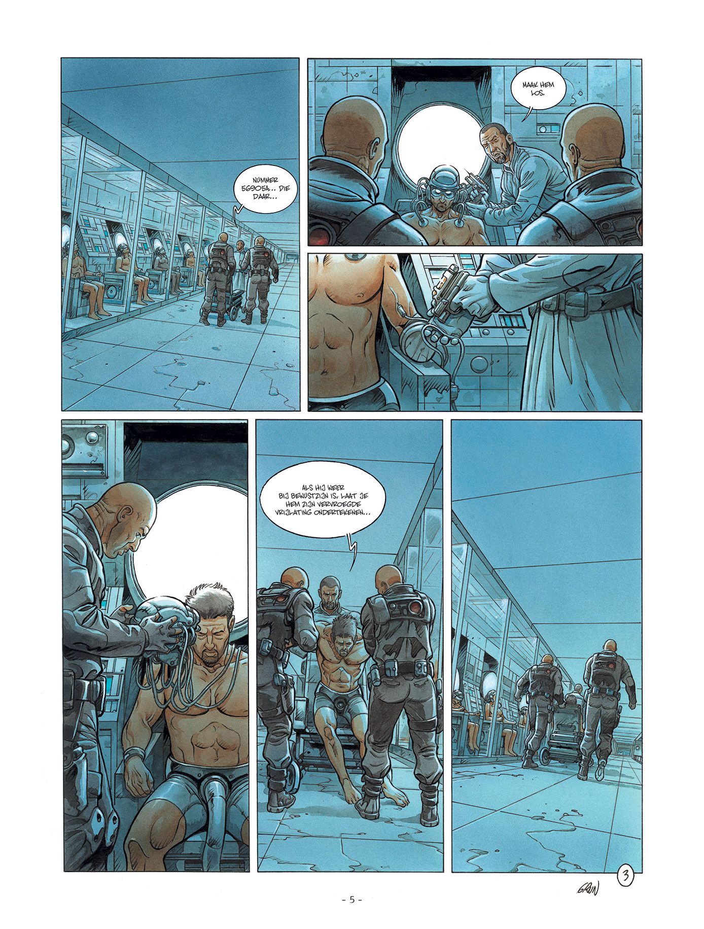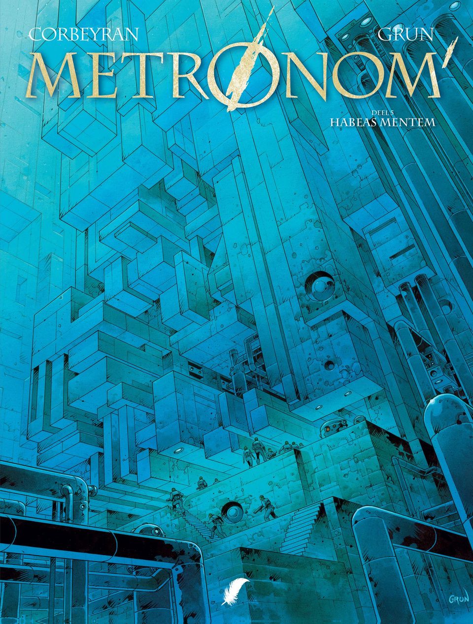 De volledige reeks bestaat ook in promopakket Striptekenaar Grun ( Ludovic Dubois , Frankrijk, °1971) tekende al heel wat bijzonder knappe strips waaronder Verbond van de Opalen Op mars hij kleurde tevens de reeks Dirty Cobb in. Stripscenarist Eric Corbeyran is een gevestigde waarde en kennen we van zijn medewerking in volgende stripreeksen : • 14-18 • aan tafel • Assassin Greed • Black Stone • Bodegas • Café Noir • Châteaux Bordeaux • > Climax • Cognac • De Clan van de Draak • De Eeuw van de Schimmen • De Meester Chocolatier • De regelaar • De Wet van de 12 Tafelen • De Zang van de Vampieren • Dierenriem • Dracula De Drakenorde • Driften • Elfen • Garrigue • Het verband van de ring • Het verbond van de opalen • Vlindernetwerk • Imago Mundi • In vini veritas • Levenslijnen • Linkerhanden • De Man van het jaar • De Gesel Gods • Meesters van het spel • Metronom • Nelson Lobster • Orion • Luxley • Piratenvlag • Shadowbanking • Territorium • Uchronies • Vinifera • Kris van Valnor • XIII Mysterie Floréal neemt contact op met een rebellengroepering om hun te verklappen hoe ze het ministerieel paleis kunnen binnendringen om de regering omver te werpen. Zijn ware doel: Lauren redden, die gevangen zit in de herprogrammeringshel. Intussen wordt de beroemde bioloog Warnier, die uit de dood is teruggekeerd, gerekruteerd door Ternett Industry om de mysterieuze entiteit uit de ruimte onder controle te krijgen… Het zou een psychisch virus zijn dat niet alleen ziektes maar ook ideeën kan verspreiden! Een ongelooflijk vermogen dat de machthebbers maar wat graag in handen willen krijgen om de bevolking nog eenvoudiger te overheersen. Een Grim toekomstbeeld door Corbeyran en Grun, in de lijn van Blade runner en Total recall. Net zoals de grote SF-klassiekers stelt Metronom’ maatschappijkritische vragen: hoever mag de overheid gaan om de bevolking onder controle te houden?
