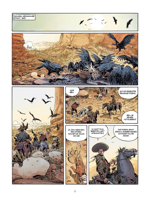 Realistische tekenstijl van Gilles Mezzomo, die eerder werkte aan bekende westernseries zoals 'Ethan Ringler'.