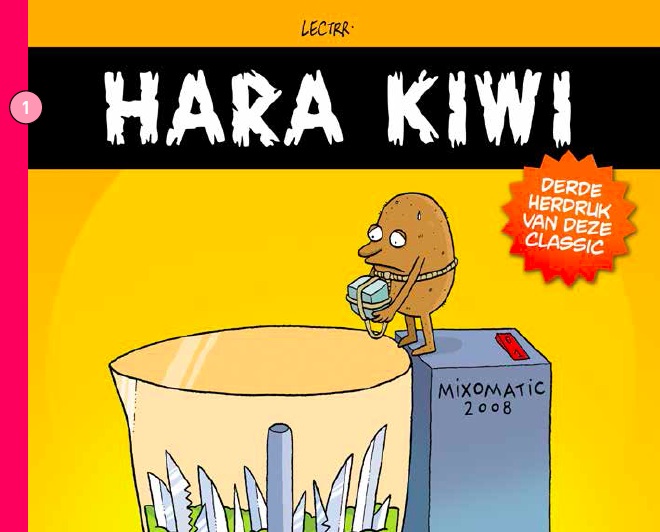Hoe pleegt een depressieve kiwi zelfmoord? De Belgische tekenaar Lectrr geeft in de bundeling Hara Kiwi antwoord. In de Nederlandse versie van deze verzameling cartoons stapt het ongelukkige fruit in een magnetron. De cartoons, in kleur, behandelen op een onnavolgbaar absurde manier actuele thema’s van de Beagle tot en met Irak - actuatoons -, het leven in het ziekenhuis, maar ook cultfilms als Star Wars. Fijne heruitgave van deel 1 van Lectrrs geweldige reeks. Op hoog tempo behandelt zijn beruchte gagstrip Hara Kiwi onderwerpen in en rondom het nieuws. Lectrr is koning, keizer en admiraal op het gebied van grappen via suggestie. Een heerlijk album!