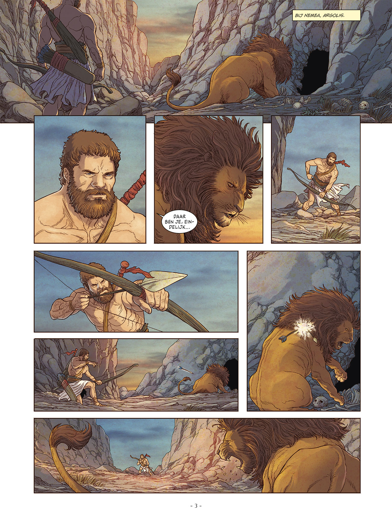 Herakles is een held geworden en begint aan de twaalf werken, in opdracht van Eurystheus, de koning van Mykenai. Voor zijn eerste werk moet hij de verschrikkelijke leeuw van Nemea verslaan, maar geen enkel wapen kan diens vel doorboren. Daarna is de Hydra van Lerna aan de beurt, met haar vele koppen en giftige adem. Deze twee werken zijn slechts een voorsmaakje van de uitdagingen die Herakles te wachten staan en waarvoor hij diep zal moeten tasten in zijn krachtenarsenaal, maar evengoed gebruik zal moeten maken van zijn sluwheid. Maar dat is het lot van een uitverkorene van Zeus. Dat is het lot van de man die de chaos moet bestrijden.