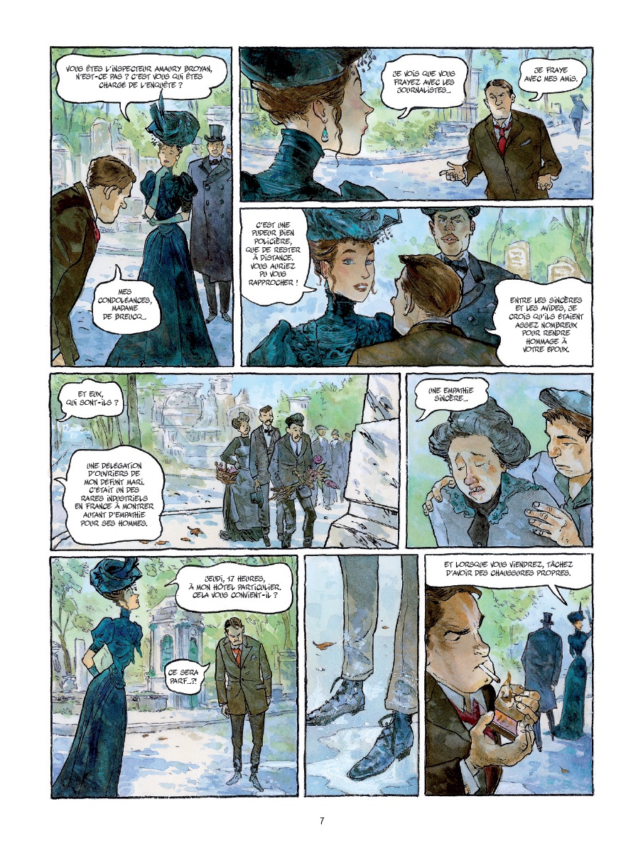 Alleen al maar door naar de cover te zien, koop je dit album. Uitbundig en sierlijk geschilderd (Jugendstil dus) door Alexis Chabert (Rogon de witte wolf, Bourbon Street). Een stijl, prima gekozen om de belle époque (1870-1914) uit te beelden.