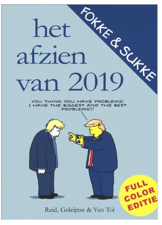 Alle vrijgegeven cartoons van 2019. Een jaar van omwentelingen. Van Trump en Brexit tot Johnson en Impeachment. Met een hoofdrol voor Greta Thunberg en haar Skolstrejk för Klimatet. John Reid (1968), Bastiaan Geleijnse (1967) en Jean-Marc van Tol (1967) studeerden in Amsterdam toen zij in 1993 door studentenweekblad Propria Cures werden gevraagd om voor het kerstnummer een cartoon te maken. Uit dat ei kropen de eend Fokke en de kanarie Sukke. Fokke & Sukke groeiden in korte tijd uit tot een van de populairste Nederlandse cartoons. Vanaf september 1999 staat het tweetal dagelijks in NRC Handelsblad. Zij maakten tevens hun opwachting in vele andere tijdschriften en periodieken, zoals de VPRO Gids, nrc.
