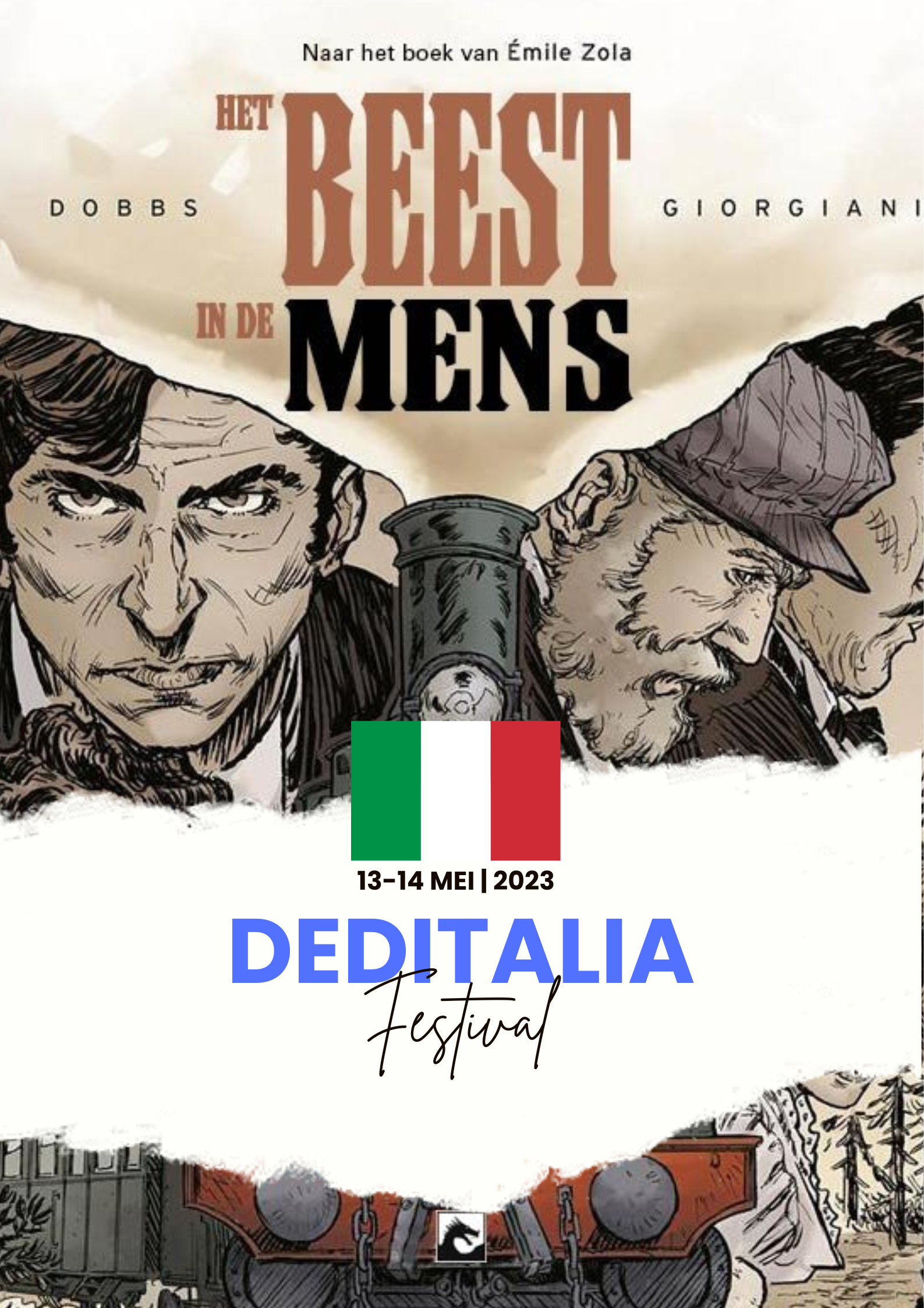 Laatste exemplaren is uitverkocht en we hebben er nog een stuk of 5 .... Actie Deditalia Deze strip wordt aangeboden met een dédicace van tekenaar Germano. Exclusief product enkel te koop van 03/05/2023 tot 11/05/2023!!!!! opgepast er zijn er maar 3 exemplaren mogelijk. Het Beest in de Mens speelt zich af in de wereld van de spoorwegen en draait om treinmachinist Jacques Lantier. Hij houdt van zijn werk en met name zijn locomotief, die hij bemint alsof het een vrouw is. Deze merkwaardige houding heeft hij niet zo maar: het helpt hem zijn moorddadige neigingen te bedwingen die hij al zijn hele leven heeft. Wanneer hij getuige is van een moord en de schuldige denkt te herkennen, wordt een reeks noodlottige gebeurtenissen in gang gezet waardoor Lantier zijn drang tot doden niet meer kan beheersen ... Scenarist Dobbs (Alamo, Mister Hyde vs. Frankenstein, Loki, De onzichtbare man, De tijdmachine, De oorlog der werelden) en tekenaar Giorgiani zijn met succes de uitdaging aangegaan om Emile Zola's klassieke roman 'Het beest in de mens' te bewerken naar een prachtig beeldverhaal. Een uitdaging inderdaad, want de talloze intriges en personages van deze episode in de Rougon-Macquart serie omzetten naar getekend beeld is zeker geen eenvoudige opgave. Of het ze is gelukt? Absoluut!