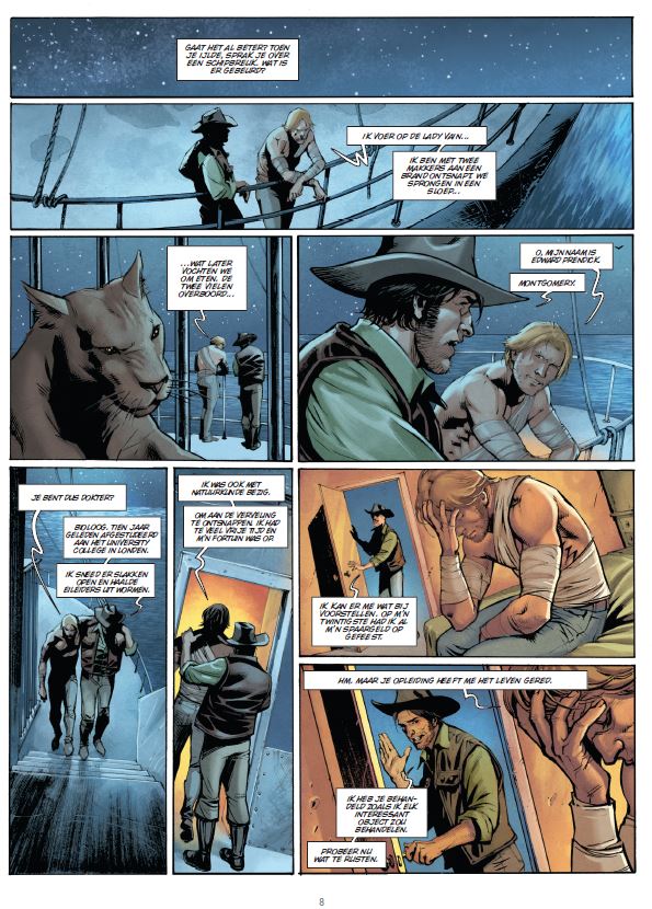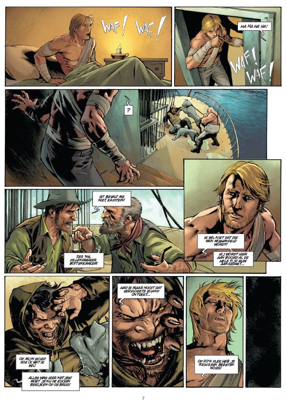 Collectie in 6 delen rond het werk van H.G.Wells. de grondlegger van de science-fiction zoals we die nu kennen. Tekeningen zijn van Fabrizio Fiorentino die we kennen van de succes reeks Napoleon uitgegeven bij Daedalus. Het bizarre en visionaire eiland van dokter Moreau, waar kwesties als identiteit en waardigheid van dieren naar voren komen, is nog altijd even relevant. ‘Zijn wij dan geen Mensen?’ Edward Prendick is de enige overlevende van een schipbreuk. Hij wordt gered door Montgomery, de assistent van een zekere dokter Moreau. Op hun eiland, ver weg van bewoning, voeren de twee wetenschappers al een tiental jaar verschrikkelijke experimenten uit. Ze transplanteren en modificeren dieren genetisch om ze bewustzijn te schenken en te laten praten. De ‘mens-dieren’ gehoorzamen aan een geheel van regels, de Wet, die elk primitief gedrag veroordeelt, en vereren Moreau als een god. Maar Pendrick ontdekt al snel dat de dierlijke impulsen van die wezens allesbehalve vergeten zijn...