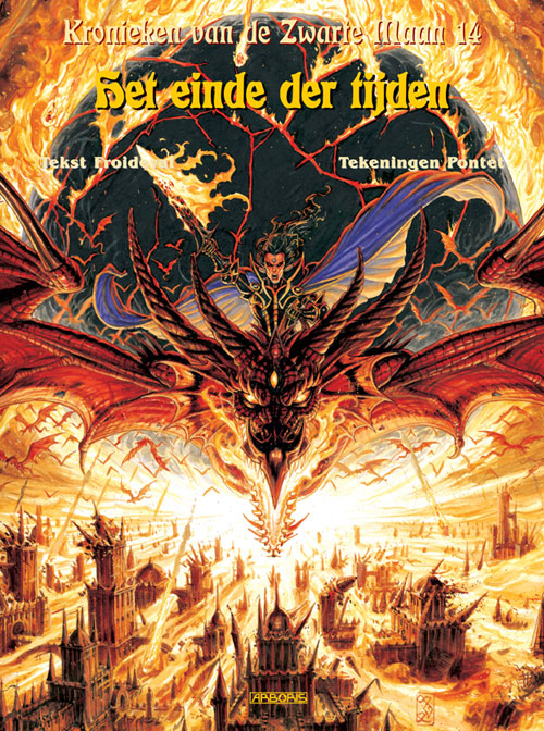 Beef, arme stervelingen ... vlucht, draken, trollen en reuzen ... het einde van de wereld zoals wij die kennen is aanstaande! De poorten van de hel staan op het punt om open te gaan en legioenen van demonen zullen alles onder de voet lopen als de Zwarte Maan zijn macht over de rest van het universum weet uit te breiden. Alleen Wismerhill kan dat nog voorkomen ... maar het lijkt een onmogelijke taak! Met dit veertiende deel komt er een indrukwekkend einde aan de hoofdreeks van de kronieken van de Zwarte Maan, al zullen er nog enkele albums volgen die dieper ingaan op de figuren en op de jeugd van Wismerhill. Omdat dit het laatste deel is in de reguliere reeks zijn er drie verschillende omslagen gemaakt. Leg je de kaften alle drie naast elkaar neer, dan zie je een doorlopende afbeelding.