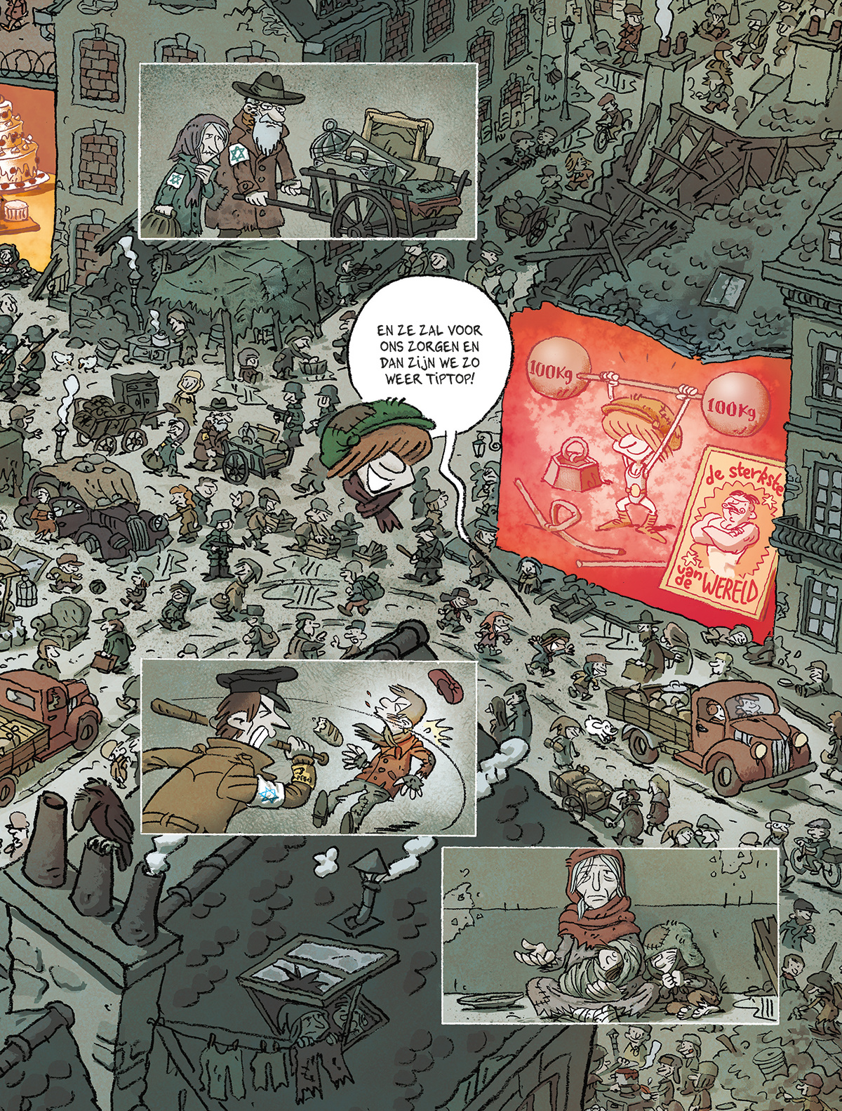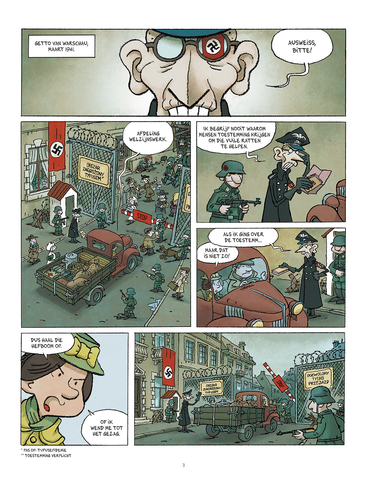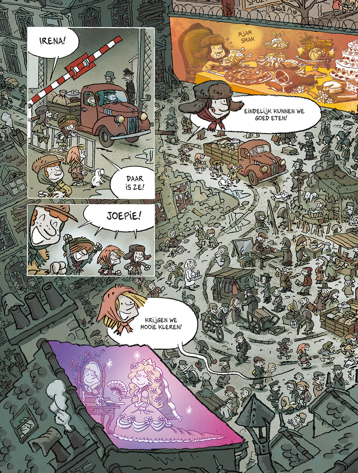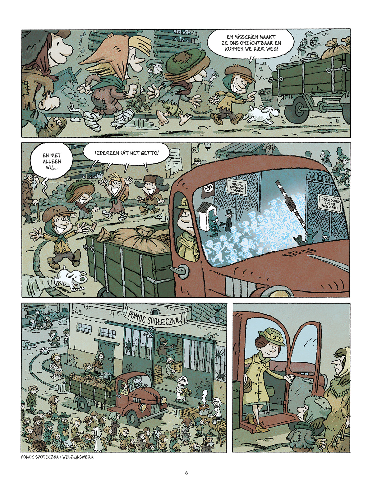 van dezelfde tekenaars verschijnt reeds in het Frans een soortgelijke strip die je bij ons later mag verwachten... Simone inschrijven en we houden je als eerste op de hoogte Irena is een reeks uit 5 delen die ontzettend mooi getekend is en een bijzonder knap scenario werk is geworden van Morvan die we kennen van o.a. volgende reeksen of delen van deze stripreeksen waar hij aan meewerkte Irena Zij schreven Geschiedenis Vernon Sullivan allias Boris Vian Troll Tarras Bulba Robbedoes en Kwabbernoot Luuna Konvooi de Jeugdjaren van Navis Konvooi Hercules Bende van Bonnot Altogo Aan het Front De Duivelsprinsen Irena Sendlerowa ( 1910-2008 ) Het ongelofelijke maar waargebeurde verhaal van deze ziekenverzorgster die tijdens WO II die in Warschau samen met anderen meer dan 2500 kinderen te redden uit de getto. Ze bouwde een heel netwerk op en met verschillende trucs kan ze er zelf persoonlijk 400 redden. Haar moed maar ook bescheidenheid is lovenswaardig, zelf onder marteling van de Gestapo om het losgeven van de namen gaf ze niet toe. Ze werd ter dood veroordeeld maar dmv omkoping, dankzij de “Zegota ( Joodse Hulporganisatie) kon ze ontsnappen en leefde onder een valse naam verder. Het netwerk dat Irena opzette was fenomenaal en pakkend, ze schreef de nieuwe namen en het adres van hun geadopteerde familie op potten en flessen die ze dan verstopte en zorgde dat de kinderen geadopteerd werden door Pools-Katholieke gezinnen. Deze reeks in 5 delen is een must niet alleen voor de stripverzamelaar maar voor iedereen. Het bevat zoveel levenslessen dat dit verplichte lectuur moet zijn voor iedereen. De cartooneske tekenstijl maakt de gruwelijkheid van deze periode milder waardoor het verhaal sereen kan gelezen worden door zowel kinderen als volwassenen. De subtiele benadering van de horror zonder te traumatiseren zorgt voor een unieke strip. Deze strip zal niemand onberoerd laten. Irena stierf in 2008. Benoemd tot Rechtvaardige onder de Volkeren in 1965, kreeg ze uiteindelijk een visum in 1983 om een boom, haar boom, te planten op de Heuvel der Rechtvaardigen, in de buurt van Jeruzalem. Ze had maar spijt van één iets in haar leven: Niet meer kinderen gered te hebben. Het eerste deel verschijnt in een exclusieve gelimiteerde versie met stofomslag en ex-libris. Het waargebeurde verhaal van een vergeten heldin. 1940, het nazi-leger is Polen binnengevallen. In Warschau zijn de Joden samengedreven in het getto: een hele wijk omringd door muren. Wie probeert te ontsnappen wordt zonder pardon neergeschoten; de enige mensen die naar binnen kunnen, zijn medewerkers van de afdeling Welzijnswerk. En zo komt Irena elke dag langs met levensmiddelen en steun voor degenen die vastzitten in deze hel en lijden aan ziekte en ondervoeding. Iedereen daar kent haar, de kinderen zijn dol op haar. Want Irena is een toonbeeld van moed: ze aarzelt niet om het op te nemen tegen de bewakers, om altijd meer te doen dan wat de nazi-bezetter toestaat. Op de dag dat een jonge moeder haar op haar sterfbed het leven van haar zoon toevertrouwt, besluit Irena om de wezen in het geheim uit het getto te halen. Om onschuldigen de wreedheden te besparen, moet ze bereid zijn haar leven op het spel te zetten. De Poolse verzetsstrijdster en activiste Irena Sendlerowa, overleden in 2008, uitgeroepen tot Rechtvaardige onder de Volkeren in 1965, was een van de grootste heldinnen van de Tweede Wereldoorlog. Ze redde bijna 2500 Joodse kinderen uit het getto van Warschau. En toch ontbreekt ze in de geschiedenisboeken... Jean-David Morvan las bij toeval een artikel over haar en begreep: haar leven moest verteld worden. Met Séverine Tréfouël en David Evrard beschrijft hij in vijf albums de humanistische strijd van deze ‘moeder van de kinderen van de Holocaust’. Mede dankzij het enorm gevoelige tekenwerk zijn de auteurs erin geslaagd om een moeilijk, aangrijpend en zeer actueel onderwerp aan te kaarten, zonder dat het te zwaar wordt... Treffend, ontroerend, vertellend over gisteren om vandaag beter te begrijpen...