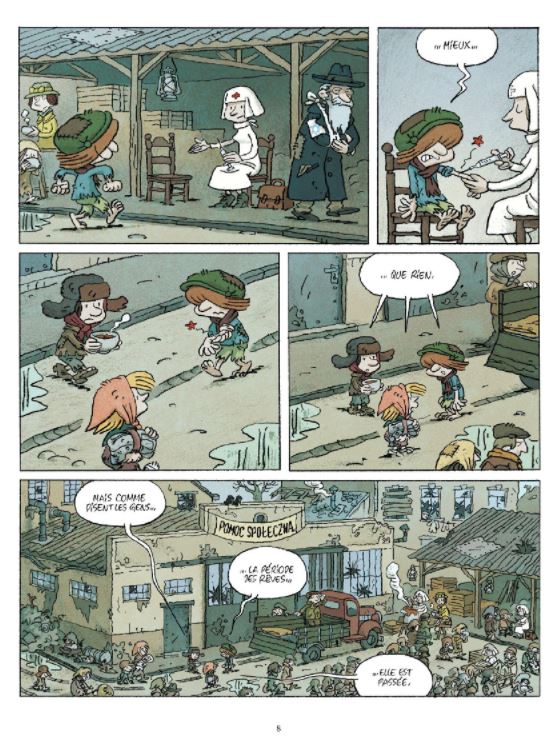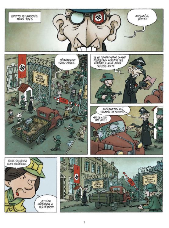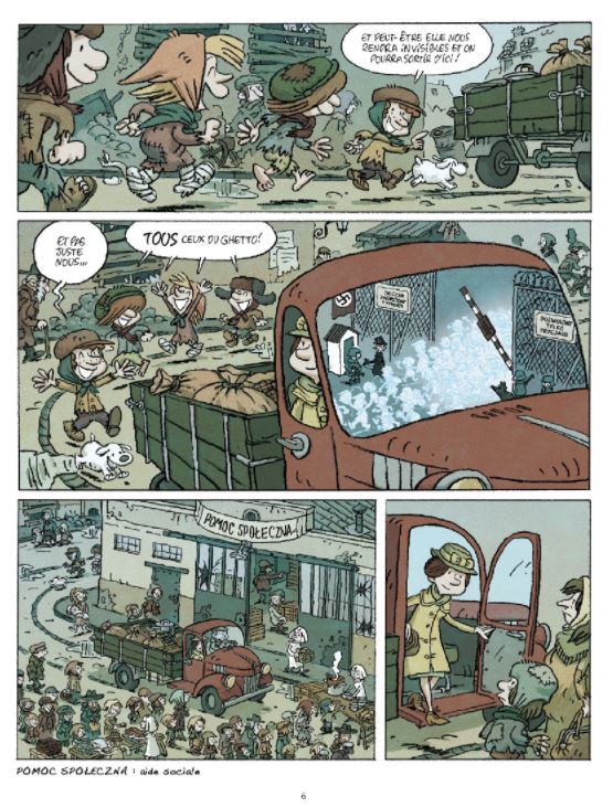 Gemiddelde score 5 / 5Een strip die nogmaals eens de gruwelijkheden ophaalt van de Tweede Wereldoorlog..., wat een slecht idee zou men kunnen denken... Maar niets is minder waar. 'Irena' doet in stripvorm wat Schindler's List betekent heeft voor de film. Namelijk één van de vele interessante verhaallijnen uit die donkere periode ons laten herbeleven maar dan vanuit het oogpunt van een zeer belangrijke figuur. In de strip 'Irena' maken we kennis met Irena Irena Sendlerowa (1910-2008), een Pools verzetsstrijdster en ziekenverzorgster voor epidemiecontrole. Ze had daardoor toegang tot het getto van Warschau. Irena heeft echt bestaan en gelukkig maar want met de hulp van medewerkers en sympathisanten lukte het haar om 2500 Joodse kinderen uit het getto te smokkelen en ze onder te brengen bij Poolse families, kloosters en weeshuizen. Via contacten binnen het ministerie van welvaart verkregen de kinderen valse papieren. Dit ongelofelijke maar waargebeurde verhaal van deze ziekenverzorgster is voor velen een mooie en waardevolle geschiedenisles die bij menig lezer een traan over de wang zal voelen lopen. De strip verhaalt de zo gekende betreurenswaardige gebeurtenis uit 1940 wanneer het nazi-leger Polen binnenviel. In de hoofdstad Warschau werden toen alle Joden samengedreven in het getto die dienst deed als een wijk omringd door muren. Ontsnappen stond gelijk als een onmiddellijke executie. De enige mensen die naar binnen mochten waren medewerkers van de afdeling Welzijnswerk. Irena bracht er elke dag levensmiddelen, kledij, medicijnen en steun voor al deze onfortuinlijke gevangenen. Op een dag besluit ze om er al de wezen in het geheim uit het getto te halen. In heel veel geschiedenisboeken ontbreekt jammer genoeg ieder spoor van deze heldin. Scenarist Jean-David Morvan vond dit absoluut niet kunnen en samen met collega scenarist Séverine Tréfouël schreef hij dit pakkend verhaal. In David Evrard vonden ze de perfecte tekenaar om de heldendaad van Irena gestalte te geven op een zeer eigenzinnige doch recht voor de raap liggende stijl van illustratie. De op het eerste zicht lijkende kinderachtige tekenstijl stuurt ons inderdaad bij de eerste minuut een wenkbrauw lichtjes de hoogte in. Maar na één bladzijde erkennen we de genialiteit van deze stijl die wonderwel past bij deze gitzwarte geschiedenis. Tekenaar David schuwt echter niet de horror die toen aanwezig was maar de tekeningen zullen zeker en vast groot en klein bekoren. Irena is een reeks uit 5 delen en is niet alleen een must voor de stripverzamelaar maar alsook voor iedereen die iets wil bijleren uit onze geschiedenis en 'zijn' helden. Dit moeilijk, aangrijpend en sinds enkele weken zéér brandend actueel onderwerp werd treffend met verve uitgevoerd door dit wondere drietal en dankzij hen werd dit 'niet' een waargebeurd verhaal van een vergeten heldin maar van een heldin waarvan er in deze wereld jammer genoeg nog steeds te weinig van zijn. (Nibs)