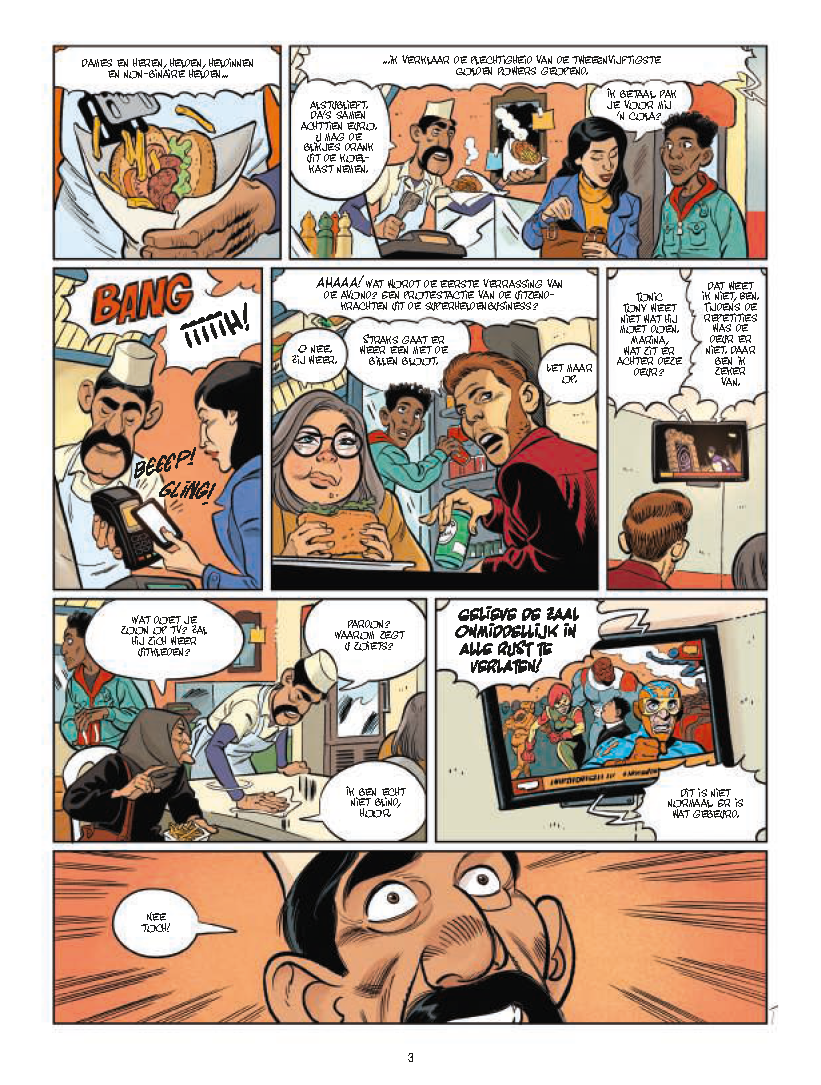 Ziad en Louna hebben allebei een uitnodiging weten te bemachtigen voor de Golden Powers, de superheldenprijsuitreiking. Maar de ceremonie verloopt niet helemaal volgens plan: er verschijnt een teleportatiepod op het podium en  gigantische ogen beginnen in de menigte te schieten. Het is een bloedbad onder de aanwezige superhelden. Ziad en Louna weten door de capsule te ontsnappen en belanden midden in de oceaan. Louna verdrinkt... Fatiah en Amine, de ouders van Ziad en Louna, die het televisieverslag van de chaos en horror hulpeloos hebben gevolgd, worden ondervraagd door de politie, die hun twee kinderen ervan verdenkt "superhelden" te zijn! Amine en Fatiah besluiten het heft in eigen handen te nemen en raken betrokken bij het politieonderzoek, tot grote ergernis van de vrouwelijke inspecteur die de leiding heeft.