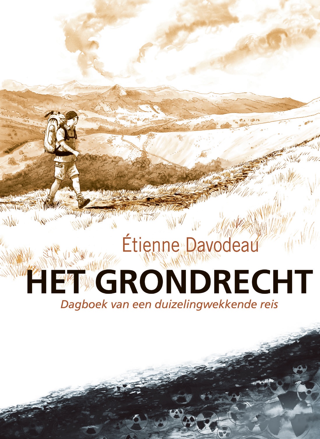 Gemiddelde score 4 / 5Het relaas van een prachtige, maar zware voettocht van 800 kilometer doorheen Frankrijk, van Peche-Merle nabij de stad Cahors naar de gemeente Bure, gelegen een eindje onder Nancy. Peche-Merle is een plaats in het departement Lot en bekend voor zijn lange grotten met beroemde prehistorische rotstekeningen van bizons, paarden en mammoeten. Bure is een dunbevolkte gemeente, slechts vierennegentig inwoners, in het departement Meuse, waar op een diepte van 500 meter nucleair afval in de kleilaag zal worden opgeslagen ten gevolge een beslissing van de Franse regering. Tekenaar en scenarist Étienne Davodeau neemt ons mee op zijn voettocht die hij op zijn eentje ondernam in juni-juli 2019, voorzien van rugzak en tentje. Hij laat ons kennismaken met de prachtige streken in zijn land en de schoonheid van de natuur die vaak door de mensen miskend wordt. De bedoeling is om respect en verwondering op te wekken voor onze aarde, maar tegelijk de afschuwelijke tegenstelling te onderlijnen tussen de schoonheid van rotstekeningen die ongeveer twintig- à dertigduizend jaar geleden werden achtergelaten door de cro-magnonmens en daartegenover het nucleair afval dat wij, de hedendaagse mens, gaan achterlaten voor onze nakomelingen. Afval dat nog honderdduizend jaar radioactief zal zijn, een impact zal hebben op het milieu en gevaarlijk is voor de mens. Door de mooi getekende landschappen doet Davodeau je zin krijgen om ook zo’n voettocht te ondernemen, of toch minstens enkele trajecten ervan te bewandelen. Tijdens zijn tocht heeft hij meerdere gesprekken — soms virtueel, want eerder gevoerd — met specialisten allerhande. Zo horen we een conservator van Peche-Merle uitleg geven over de rotstekeningen, maar evengoed een agronoom of landbouwkundig docent verklaren hoe de bovenste vruchtbare laag van onze aardbol met de ongelofelijke groei van organismen en planten het leven mogelijk maakt. Er is ook een uitgebreid gesprek met een kernfysicus die nauw betrokken was bij de bouw van de eerste Franse kerncentrales. Hij is ondertussen fel gekant tegen kernenergie, vooral wegens het radioactieve afval. In dat kader stelt Davodeau ook vragen aan een docente taalwetenschappen op welke wijze we de mensen, die eeuwen na ons zullen leven, verstaanbaar kunnen maken en waarschuwen voor het ingepakte afval. Een lastige zaak als we zien hoe onze communicatiemiddelen de voorbije drieduizend jaar geëvolueerd zijn van tekens naar vele verschillende talen. Er zijn niet enkel wetenschappelijk onderbouwde gesprekken, er zijn ook verrassend leuke ontmoetingen met gastvrije lokale bewoners en soms komt een vriend of vriendin enkele dagen gezellig meewandelen. Finaal horen we de argumenten van een actievoerder tegen de achtergrond van strenge politiecontroles in de beveiligde omgeving van Bure. Het album is een sensibilisering en een protest tegen het creëren en opbergen van nucleair afval dat nog honderdduizend jaar radioactief is en gevolgen heeft voor de mensheid. De ganse wandeltocht is getekend in zwart-wit met grijstinten. Deze tinten krijgen echter zoveel schakeringen in aquarel dat de afwezigheid van inkleuring helemaal niet gemist wordt. Het is een prachtig en leerrijk album dat in 2021 eerst in het Frans werd gepubliceerd. De afwisseling tussen de wetenschappelijk onderbouwde toelichtingen en de mooie landschappen en gezellige ontmoetingen slepen je automatisch mee in het complete betoog. Qua concept is het enigszins te vergelijken met het album De Onwetenden (2015), waarin Davodeau ons een brede inkijk gaf in de wijnmakerij. We onthouden Het Grondrecht voor de eindejaarslijst. ssz bron