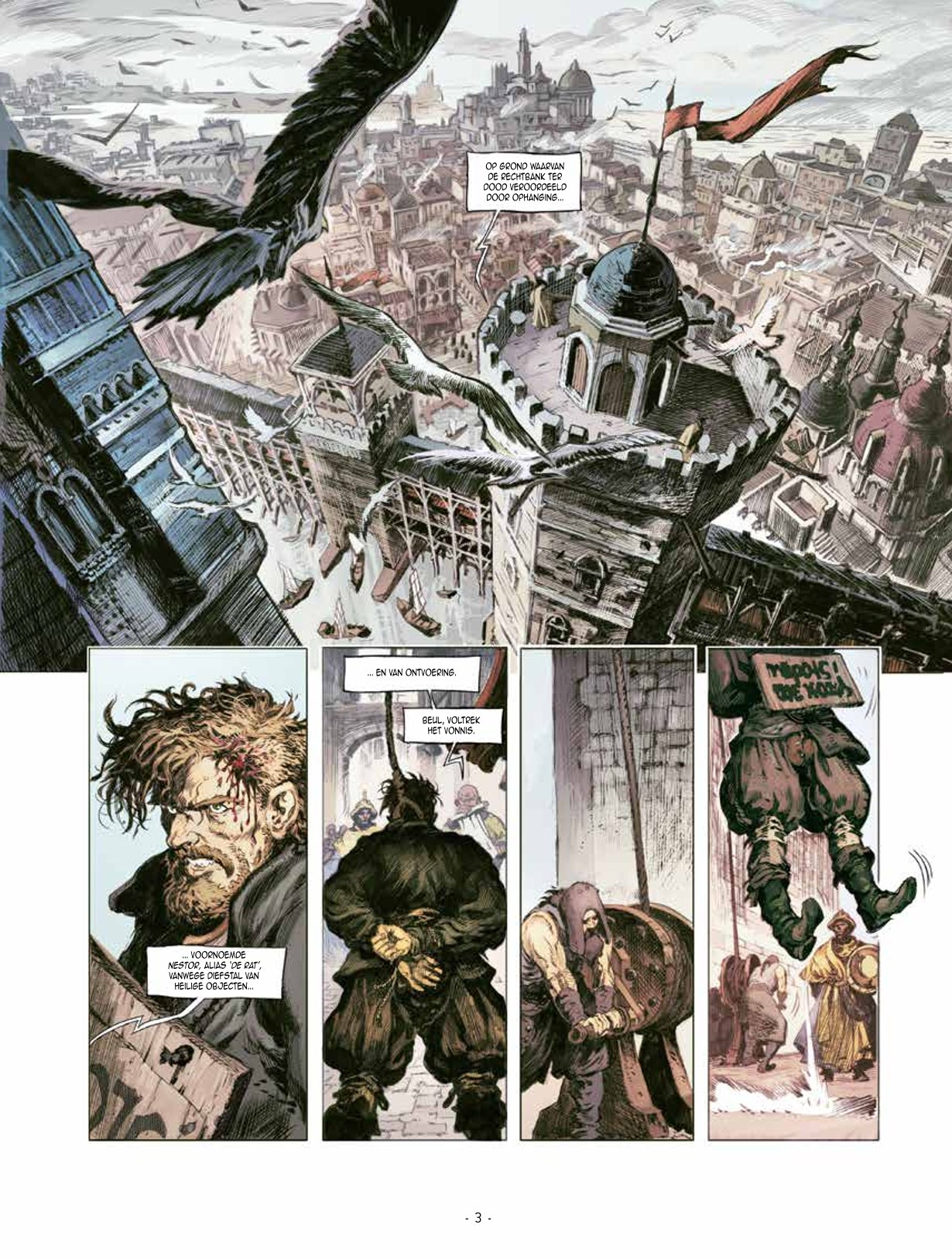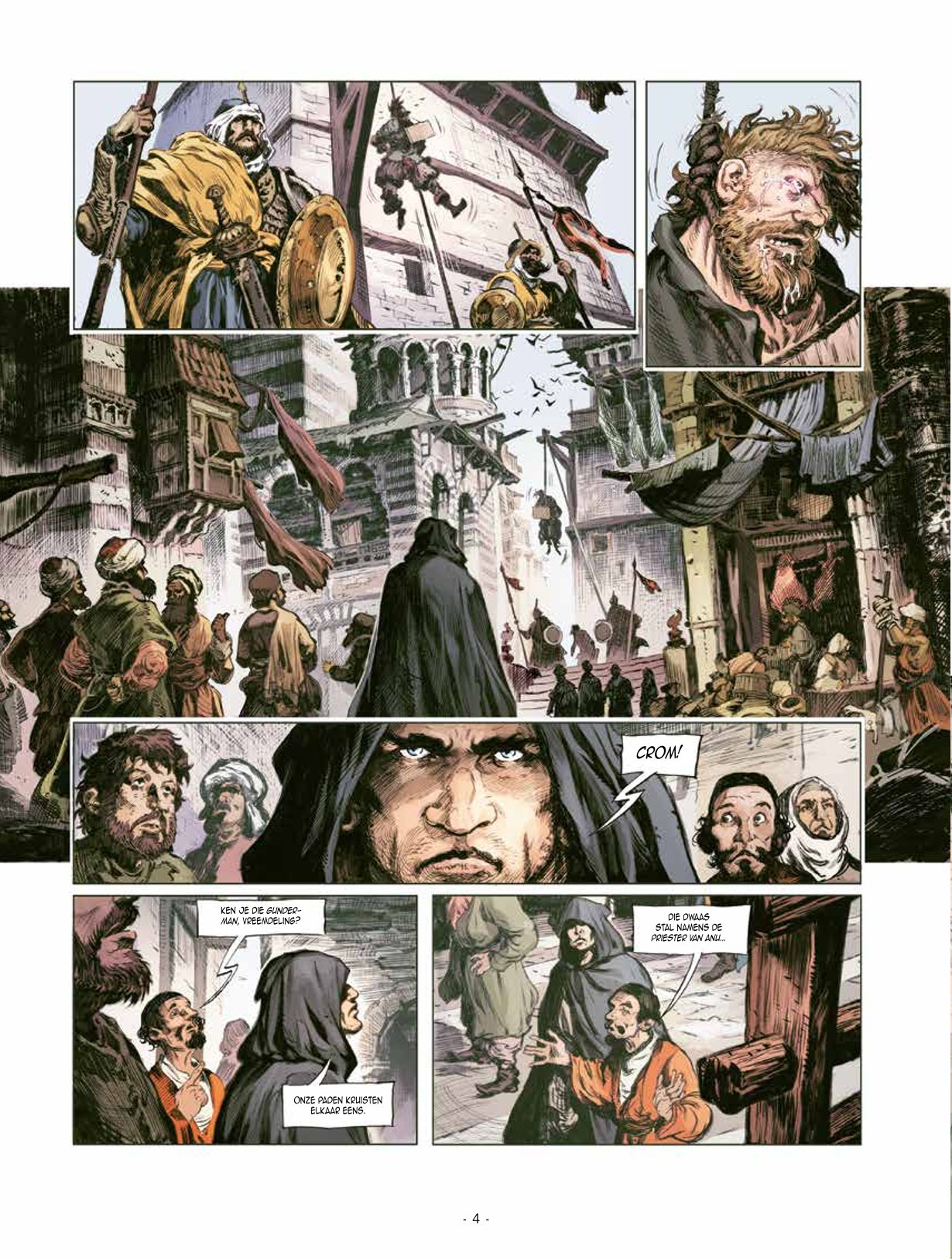 Verwacht augustus Een willekeurige stadstaat, ergens tussen Zamora en Corinthia. In de gevangenis snelt zijn reputatie als huurling Conan vooruit. Hij wordt benaderd door Murilo, een invloedrijke aristocraat die de diensten van de Cimmeriër wil inhuren om van zijn politieke tegenstander af te komen: de rode priester Nabonidus. Conan slaagt erin te ontsnappen en infiltreert vervolgens het afgesloten huis van zijn doelwit. Maar daar ontdekt hij dat achter de machtsstrijd tussen Nabonidus en Murilo misschien iemand anders aan de touwtjes trekt... In dit nieuwe album beschrijven Patrice Louinet en Paolo Martinello Conan als een dief en huurmoordenaar door het lot verbonden met twee bandieten van een heel andere soort. Conan de avonturier, Het huis van de drie bandieten Tekst: Patrice Louinet Tekeningen: Paolo Martinello Drie wensen, Zij schreven geschiedenis