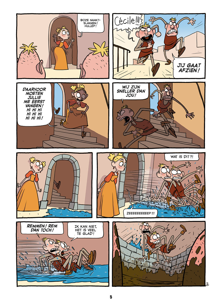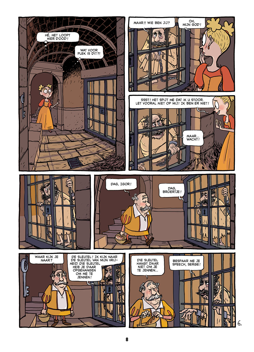 'Uiteraard was het goed leven in het koninkrijk! Dat kleine rustige landje, vergeten door zijn machtige buren en hun nooit aflatende oorlogen. Dat kleine stukje grond waar sinds jaar en dag vrede heerste... tot op de dag dat een roekeloze daad van prinses Cécile het koninkrijk in rep en roer zette en oude wonden deed openrijten. Wie is de gevangene die opgeborgen zit in een donkere cel in de koude kelders van het kasteel? Welke last tornt koning Serge al jarenlang met zich mee? Zal het de ietwat naïeve, maar moedige smid François eindelijk lukken de bevallige Anne aan de haak te slaan... en zijn de praatgrage, maar betweterige vogeltjes deze keer écht een vogel voor de kat? Allemaal vragen die een antwoord vinden in De Twee Prinsessen, het tweede deel uit de komische reeks Het Koninkrijk. De man die instaat voor al dit lekkers, is de in Brussel wonende striptekenaar Benoît Feroumont. Hij tekende eerder al voor het Vrije Vlucht-one-shot Ivan/Ivanka en het Robbedoes-verhaal Kwabbernoot Gaat Trouwen. Naast zijn activiteiten als striptekenaar, verleent Feroumont regelmatig zijn medewerking aan animatiefilms, waaronder De Romeinse Lusthof, de verfilming van het gelijknamige Asterix-album.' bron ssz