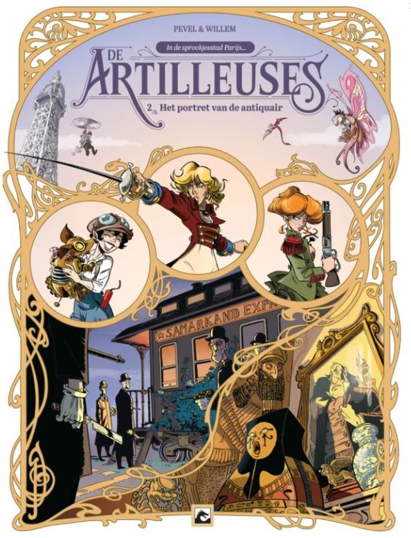 Als er niets ontploft, hebben ze ergens een fout gemaakt. We zijn in 1911, in het Parijs der Wonderen. De Artilleuses: Lady Remington, Miss Winchester en Madame Gatling - hebben zojuist het zegel gestolen, een mysterieuze ring die hen in de problemen brengt met de politie, maar ook met de agenten van de Kaiser. En nu neemt het 2e Bureau ook nog deel aan de jacht op de schietgrage heldinnen. Om uit de problemen te komen, hebben de Artilleuses geen keus: ze moeten het geheim van het zegel ontdekken en het buskruit laten spreken... Artilleuses 2, Het portret van de antiquair Pierre Pevel Étienne Willem: De vleugels van de aap, Het meisje van de Wereldexpo