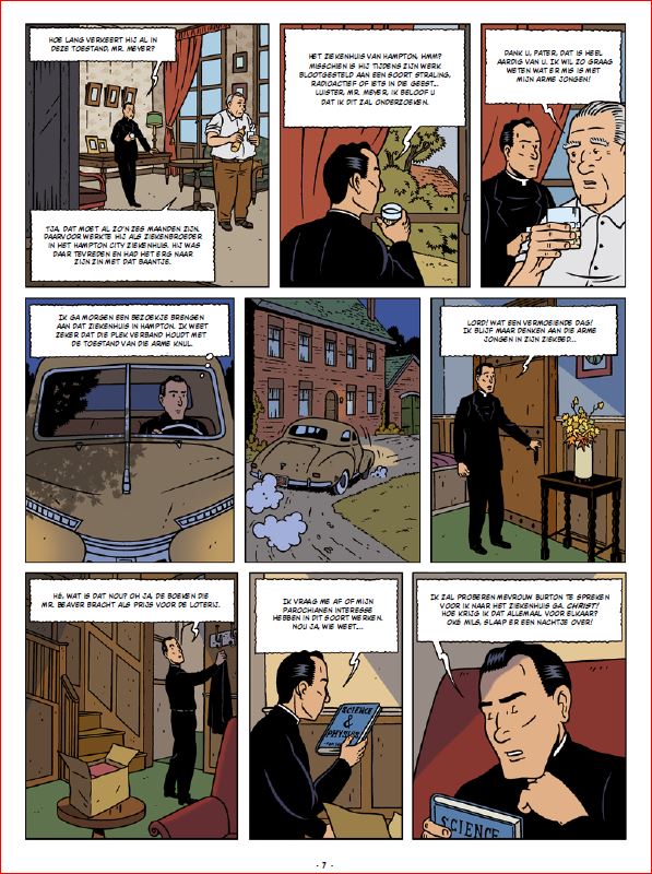 Voor de liefhebbers van de klassieke klare lijn, heb je hier een stripverhaal die je zeker zal weten te smaken. compleet verhaal Stripauteur Devig kennen we van de reeks De Avonturen van Soctt Leblanc 1951, oostkust van de Verenigde Staten. Een priester in de bloei van zijn leven, pater Mils, wordt toevallig geconfronteerd met een mysterieuze ziekte die een van zijn parochianen bijna dodelijk treft. De patiënt is echter niet alleen. Bewogen door medeleven, is Mils vastbesloten een genezing te vinden. Al snel ontdekt hij nog een patiënt in het nabijgelegen ziekenhuis, en vervolgens verschillende soortgelijke gevallen in verschillende delen van de Verenigde Staten. Elke keer dat hij hen probeert te benaderen, verdwijnen de zieken op het laatste moment. Wie willen koste wat kost vermijden dat pater Mils hen spreekt. En waarom?