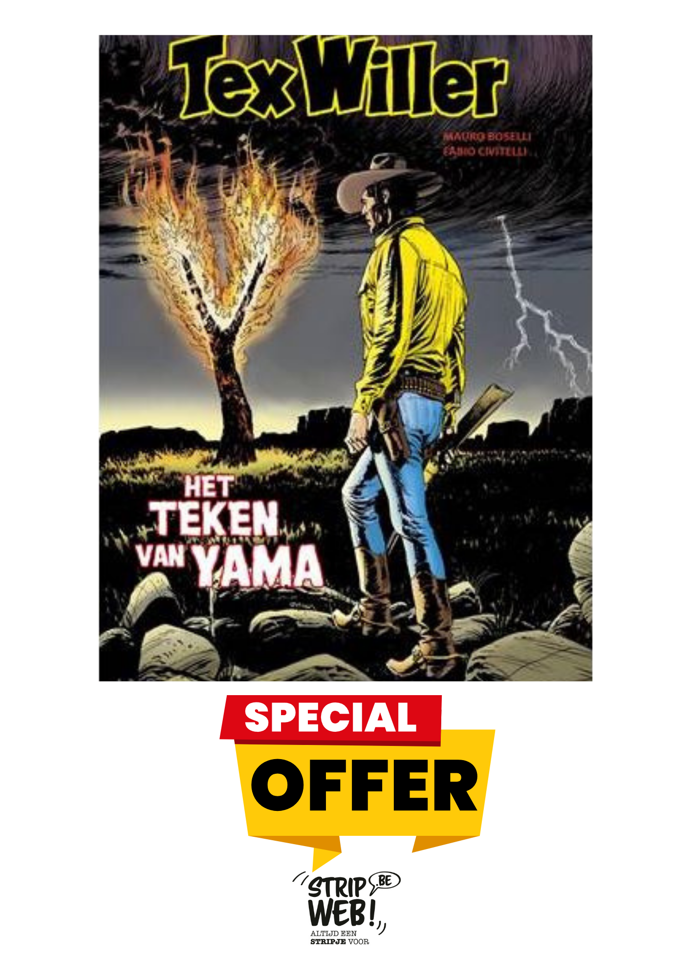 Trouwe lezers van deze site weten dat we de westernreeks Tex Willer Classicshoog inschatten. Stevige verhalen waarvoor de auteurs alle ruimte hebben (telkens meer dan 200 pagina's), tekeningen die in zwart-wit overtuigend overkomen en een prima prijs-kwaliteitverhouding. Eind oktober publiceert Uitgeverij HUM! een volgend knallend avontuur van Tex Willer, Het Teken van Yama. Het bijzondere is dat het nog dikker is dan gewoonlijk voor een Tex Willer Classics en daarom buiten de reguliere reeks in een soort nevenreeks wordt uitgegeven. Geen deel 16 dus, maar een op zichzelf staand album van Tex Willer dat maar liefst 336 pagina's dik is. Met hetzelfde aantal pagina's zouden precies zeven albums van 48 pagina's kunnen uitgegeven worden. De auteurs van deze dikke Tex zijn Fabio Civitelli, die al Tex Willer 2: Dodemansrit heeft getekend. Aan het roer als scenarist staat Mauro 'The Boss' Boselli, een veelschrijver van de reeks. Zij voeren een oude tegenstander van Tex op: magiër Yama, de zoon van Mefisto. Deze laatste kwam al voor in de oude pocketreeks uit de jaren 1970. (ssz)