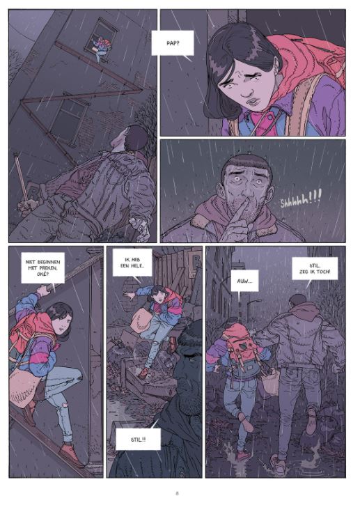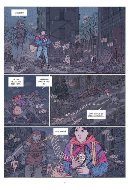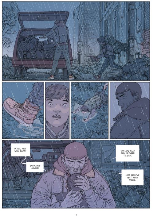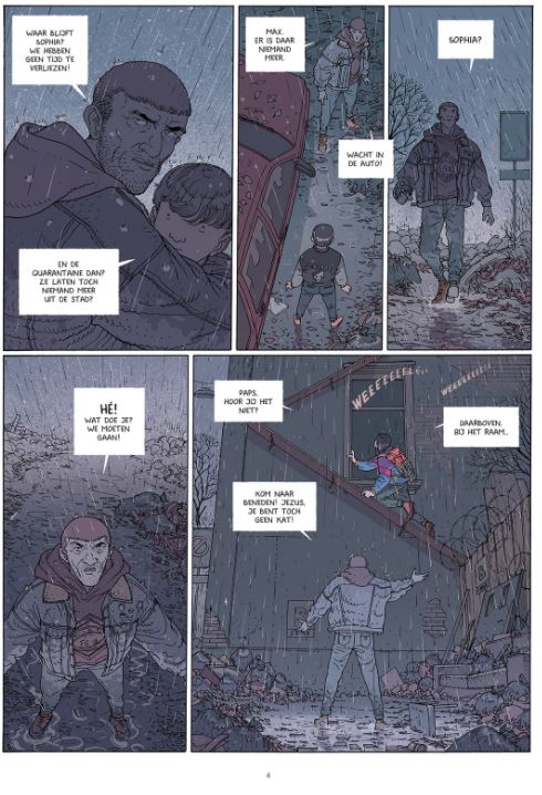 Gemiddelde score 5 / 5Overleven in de bergen Het leven in de grootstad is onhoudbaar geworden. Er is geen eten meer te vinden in hun verlaten en volkomen geïsoleerde wijk zodat vader Liam besluit te vertrekken met dochter Sophia en zoon Max naar het vakantiehuisje van zijn ouders in de bergen. Sophia ontfermt zich bij hun vertrek nog over een wenende baby wiens moeder overleden is. Na een eind snelweg valt de Volvo zonder benzine en moeten ze te voet verder. Ze overnachten in een verlaten boerderij. Later die nacht verschijnt een groepje macho’s die enkele vrouwen molesteren. Het komt tot een schietpartij, waarop Liam met zijn kinderen kan ontsnappen met een voertuig van de macho’s. Wegens een dikke sneeuwlaag in de bergen moet ook dit voertuig achtergelaten worden. Moeizaam bereiken ze het vakantiehuisje, maar oma en opa zijn er niet. Er is ook geen eten te vinden in het huis, het is blijkbaar geplunderd door anderen. Verderop in de vallei komen ze uiteindelijk terecht in een klein stadje (gelijkend op Pontresina?), bewaakt door een aantal overlevenden. Nieuwelingen uit de grootsteden worden beschouwd als vluchtende toeristen die de boel komen besmetten en die normalerwijze worden geweerd. Omdat Liam als monteur misschien toch van nut kan zijn voor het herstellen van defecte voertuigen, mag hij met de kinderen toch tijdelijk zijn intrek nemen in een internaat. Er ontstaan echter voortdurend conflicten met andere groepen die zich in de bergen hebben teruggetrokken. Elke groep vecht voor zijn levensonderhoud en wil zijn dorp en territorium afschermen... In boek 1 van Het Verval was er een zekere herkenning met het begin van onze coronapandemie: een economische stilstand, talrijke overlijdens, het instellen van quarantainezones enzovoort. In de desolate verlaten grootstad was er nog enigszins een beredeneerde ordehandhaving te merken. Boek 2 toont nu een harde strijd op leven en dood tussen individuen en groepen om te kunnen overleven in de bergen. Deze personen zijn erheen getrokken om niet besmet te raken. Het gebruik van geweld met vuurwapens krijgt hierbij almaar meer de bovenhand en wordt een normale zaak. Voor ons hoeft dergelijk geweld tussen groepen niet te gratuit te worden. Het is daarbij niet altijd duidelijk wie de goeden en de slechten zijn. Maar misschien raakt de mensheid wel echt in verval? Dat daarbij het bezit van moderne geweren doodgewoon lijkt, komt waarschijnlijk omdat er in Zwitserland, waar het verhaal zich afspeelt, een verplichte legerdienst is voor mannen tussen 18 en 34 jaar, met periodieke trainingen en schietoefeningen. Na de legerdienst kunnen ze het wapen desgewenst houden. Ook in boek 2 zijn geen informatieve tekstblokjes te lezen bij een plotse overgang naar een volgende scène, hoewel dit soms nuttig zou zijn geweest. Op een bepaald ogenblik wekte dit zelfs even de indruk dat het album verkeerd werd ingebonden en dat we iets gemist hadden. Zoals we eerder schreven, zijn de tekeningen van Jared Muralt voorbeeldig, gedetailleerd levensecht, zowel de personages als de omgeving. De inkleuring is sfeervol. Sterk dat hij ook het scenario voor zijn rekening neemt. Hoe het verder loopt, komen we te weten in boek 3. (ssz)